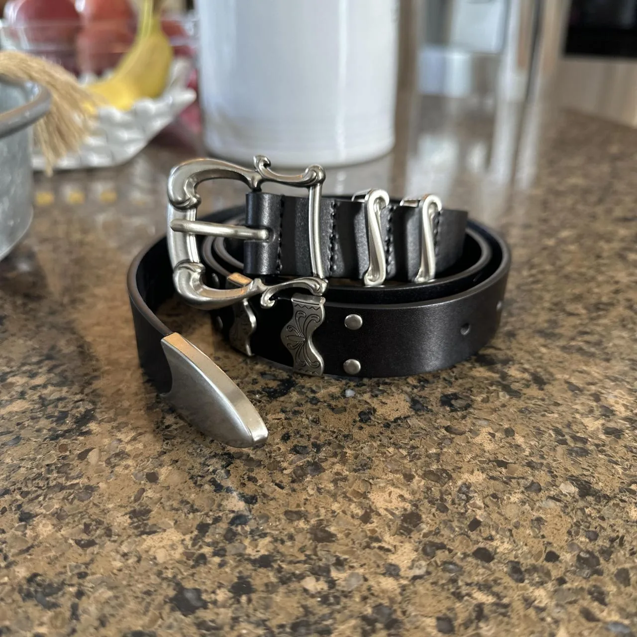 Black silver metal belt genuine leather and real metal studs. Not a cheap fast fashion belt this is the real deal. Fits sizes 28-34. Custom and handmade. #y2k