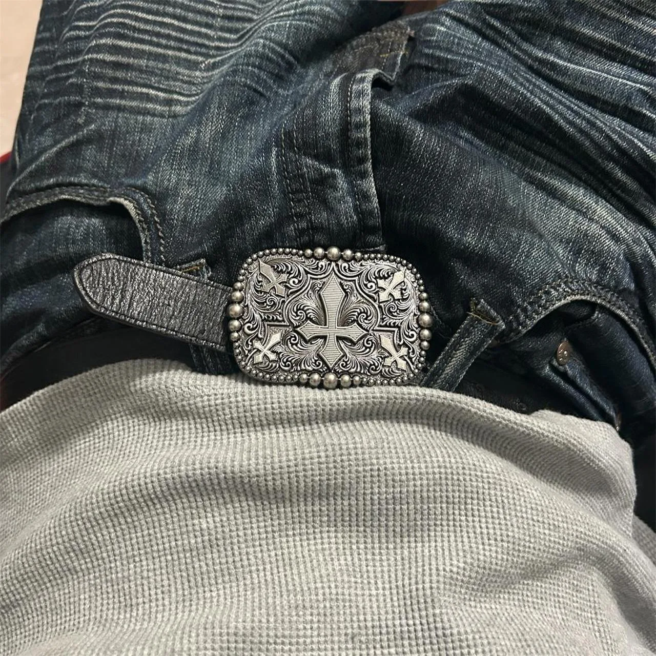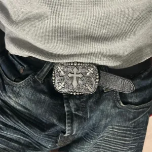 cross belt buckle, western belt accessory, grunge belt, Y2K fashion, skater style, punk belt, edgy buckle, statement belt, vintage-inspired accessory, streetwear belt, retro punk buckle