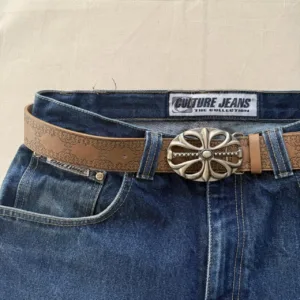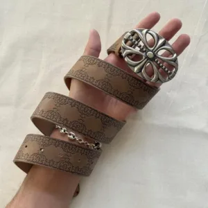 y2k style brown american western floral gold boho belt