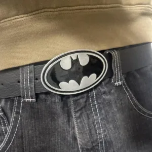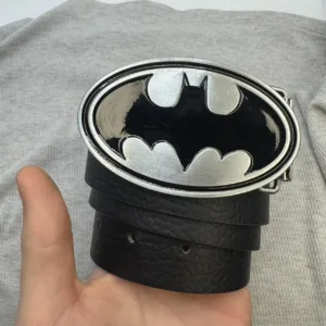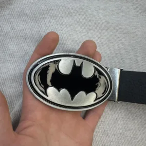Silver Batman buckle with black belt
