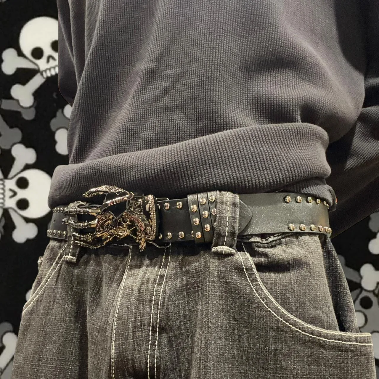 Y2K Ed Hardy Style “Love Kills Slowly” Crossbones x Hand Belt