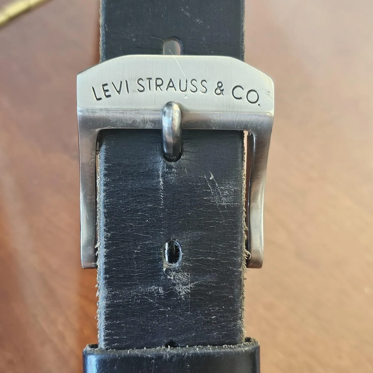 Levi’s black leather belt. 34″ Visible wear but lots of life left #leather #menswear