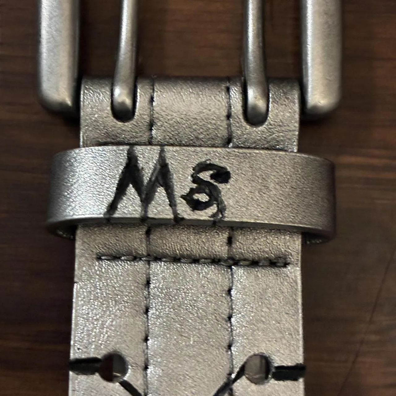 Silver leather belt with black design #handmade size 32-34 belt I made
