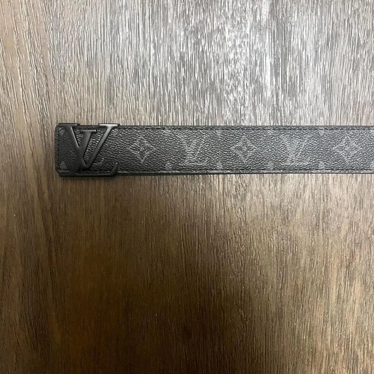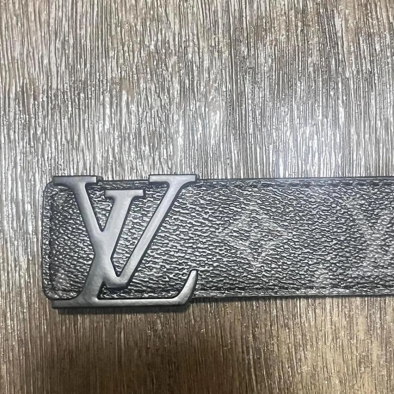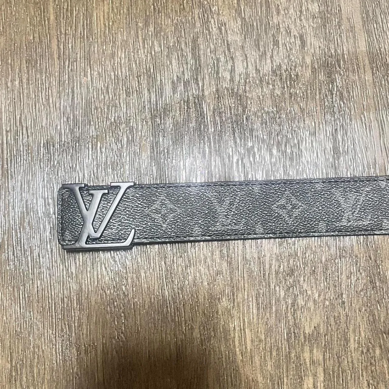 Black and grey buckle lv belt