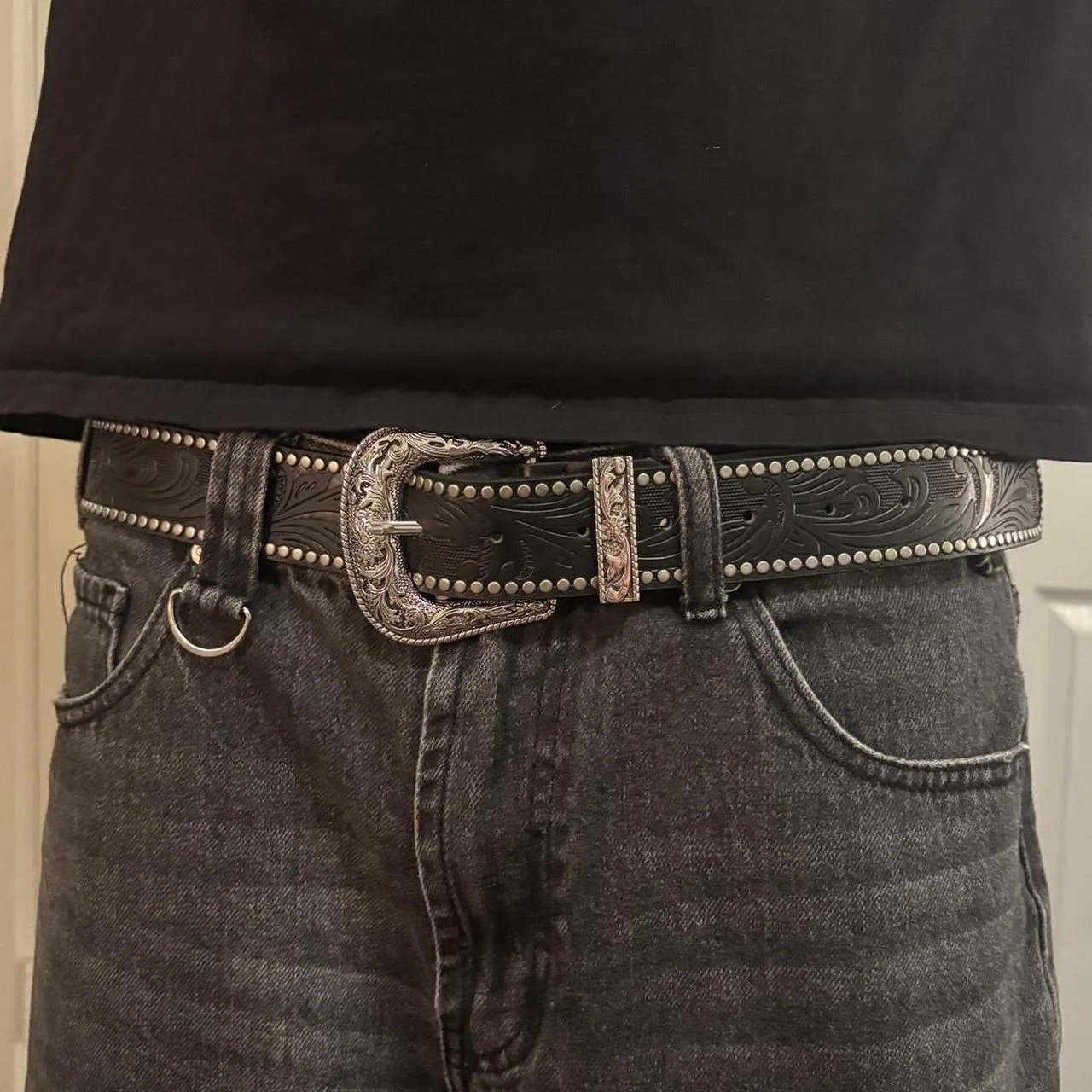 Y2k grunge western-studded black belt
