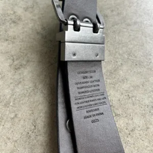 Sleek black grommet-style belt with a double-hole design and brushed silver-tone buckle. Classic Y2K punk/skater look that works perfectly with jeans, cargos, or streetwear fits. Durable bonded leather construction gives it a sturdy, slightly structured feel.