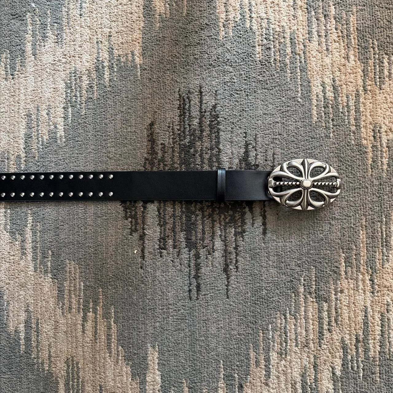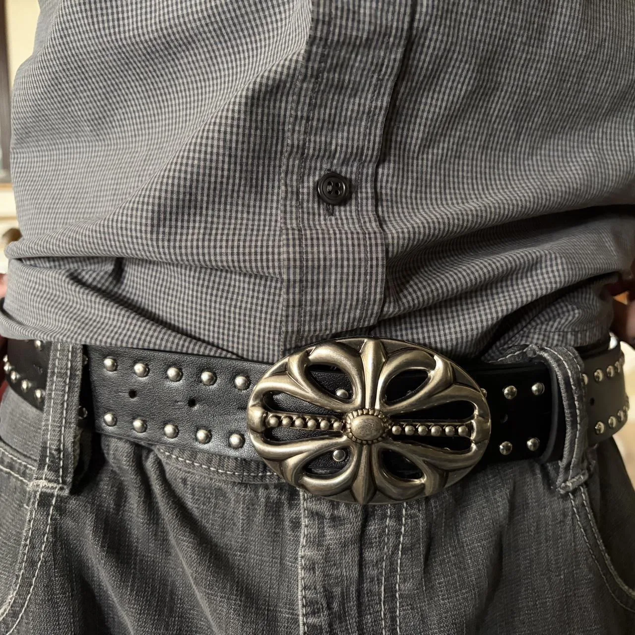 Y2K Black leather studded belt with silver