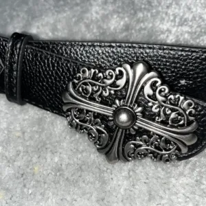 Y2K Chrome H earts type style Black leather belt with cross buckle #gothaccessories
