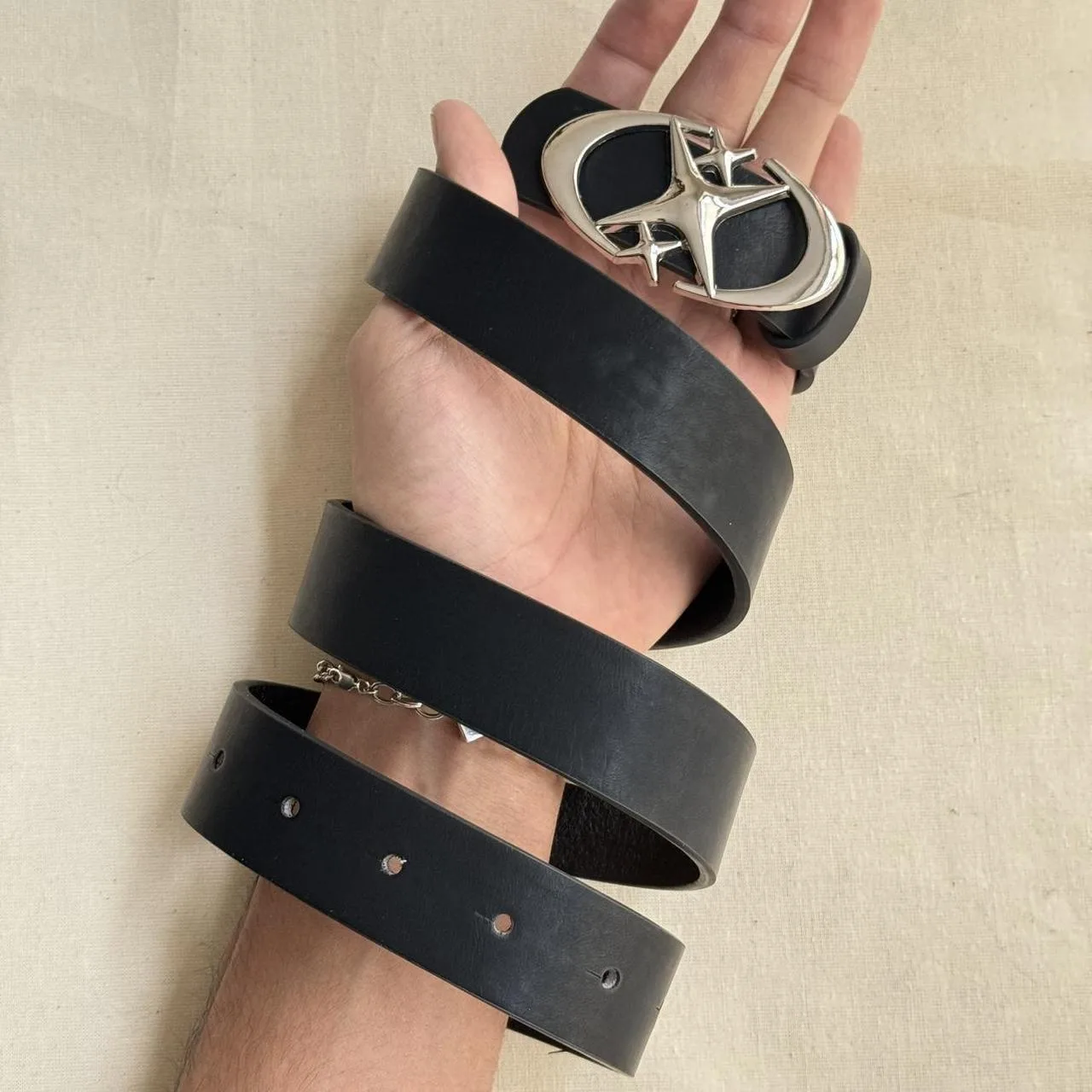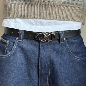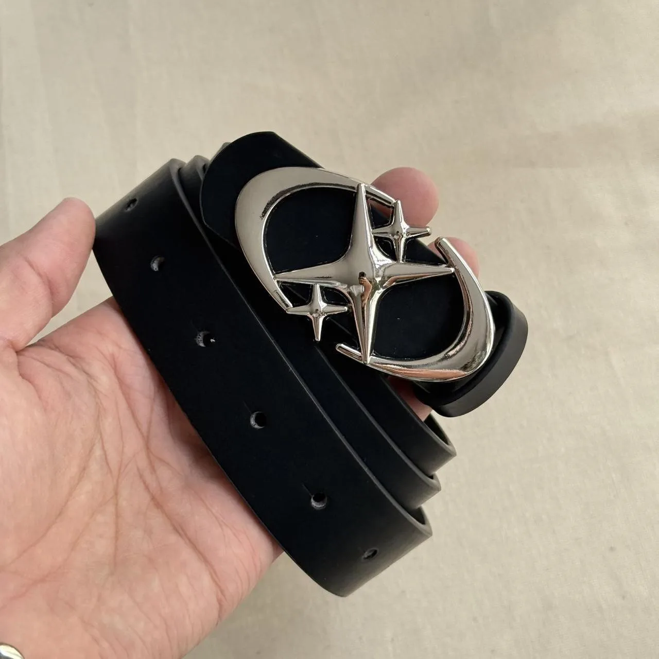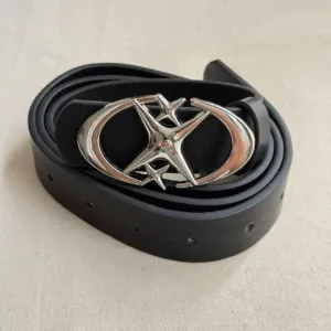 y2k style futuristic star emblem black and silver grunge emo belt