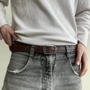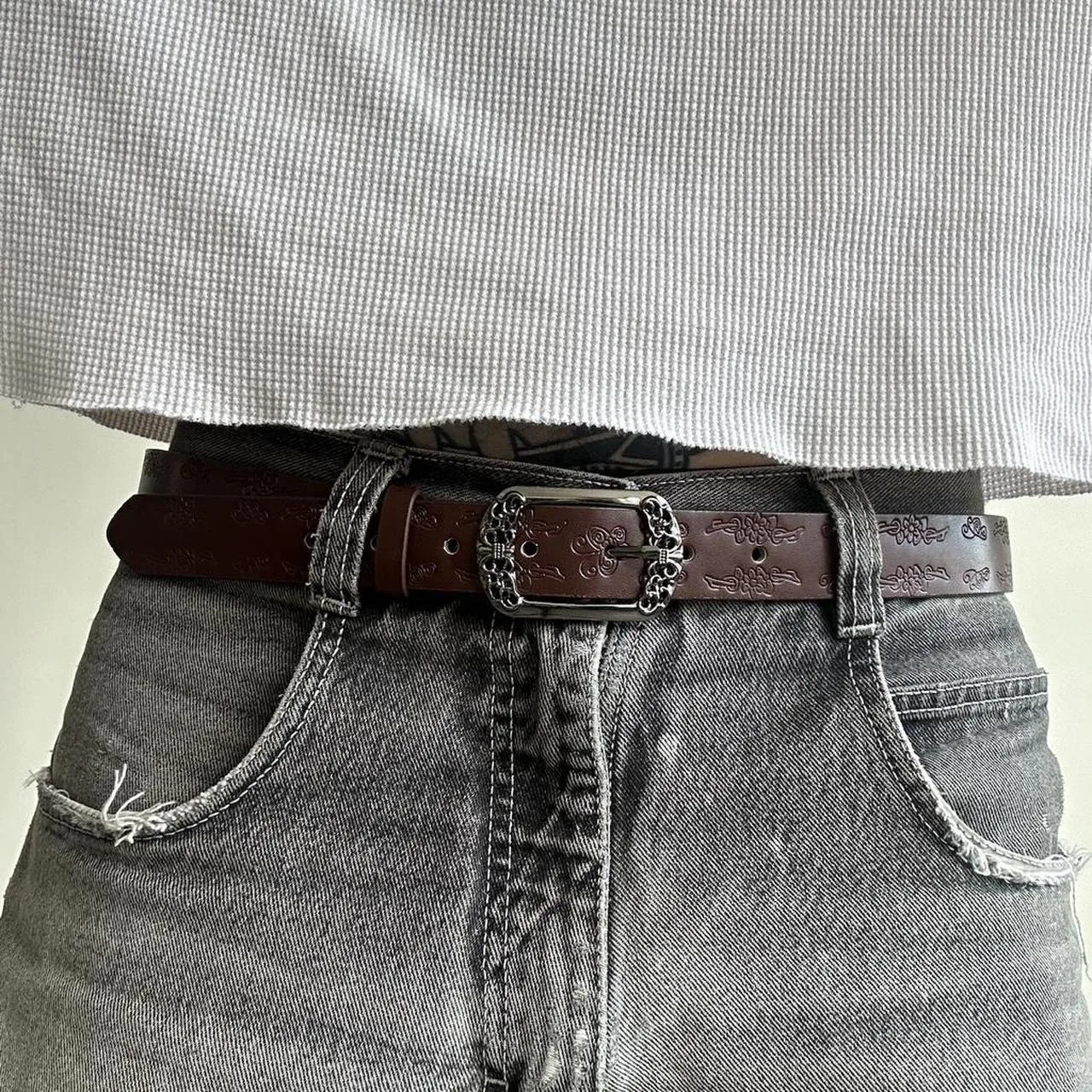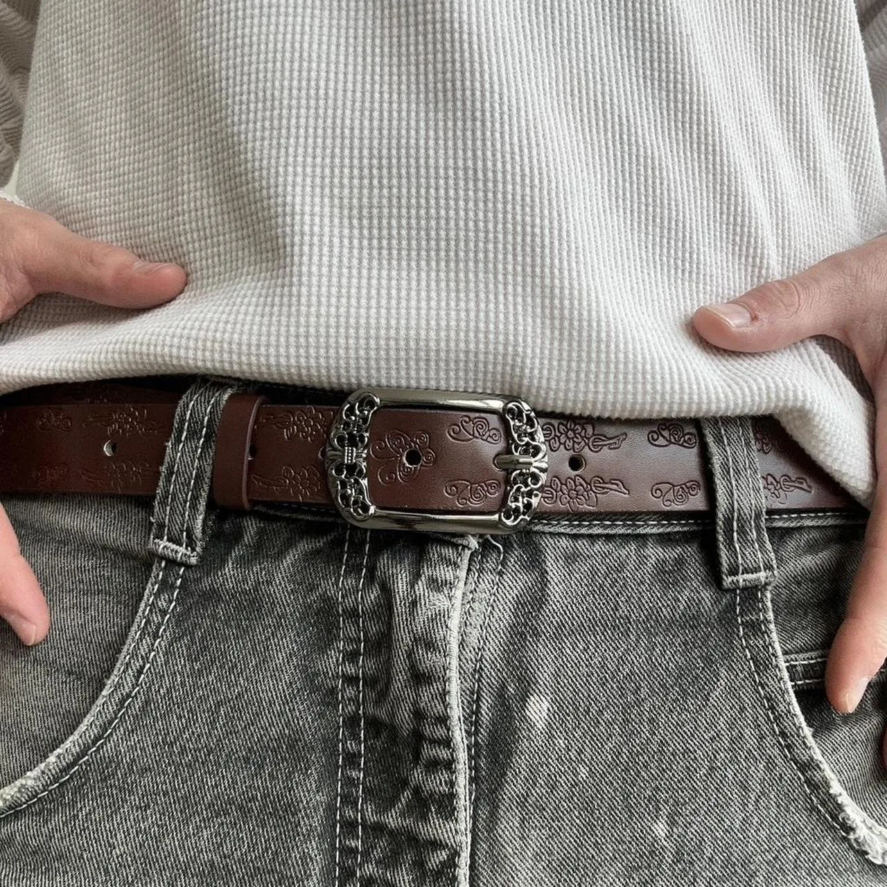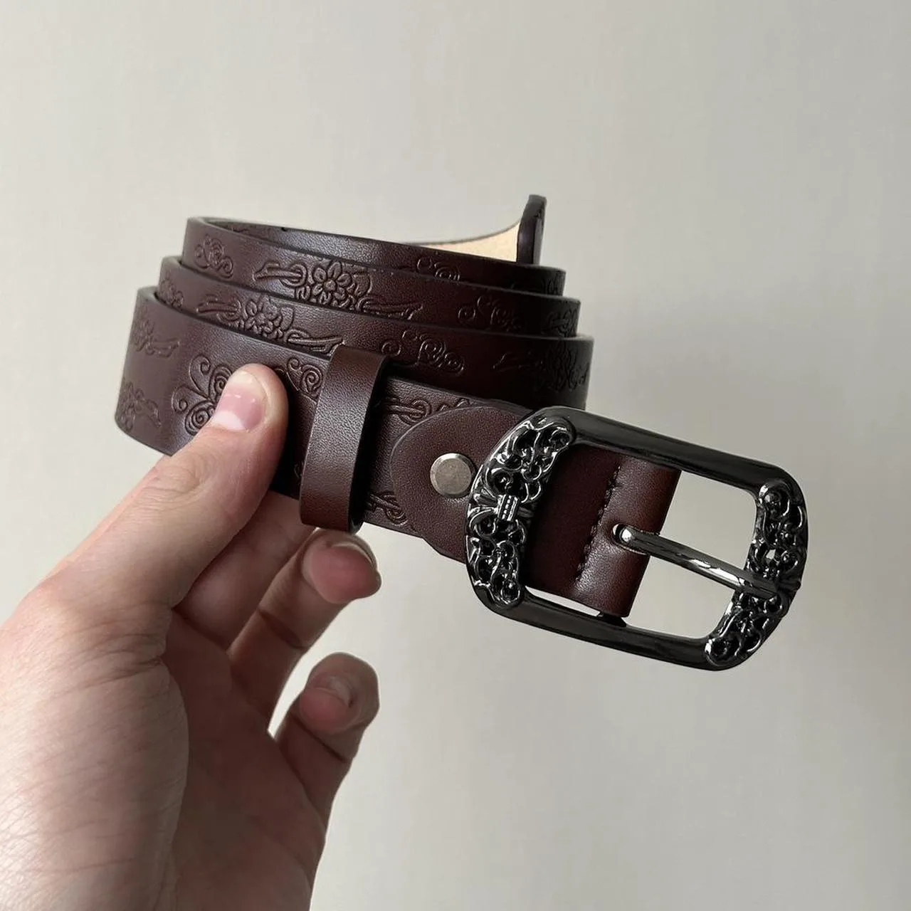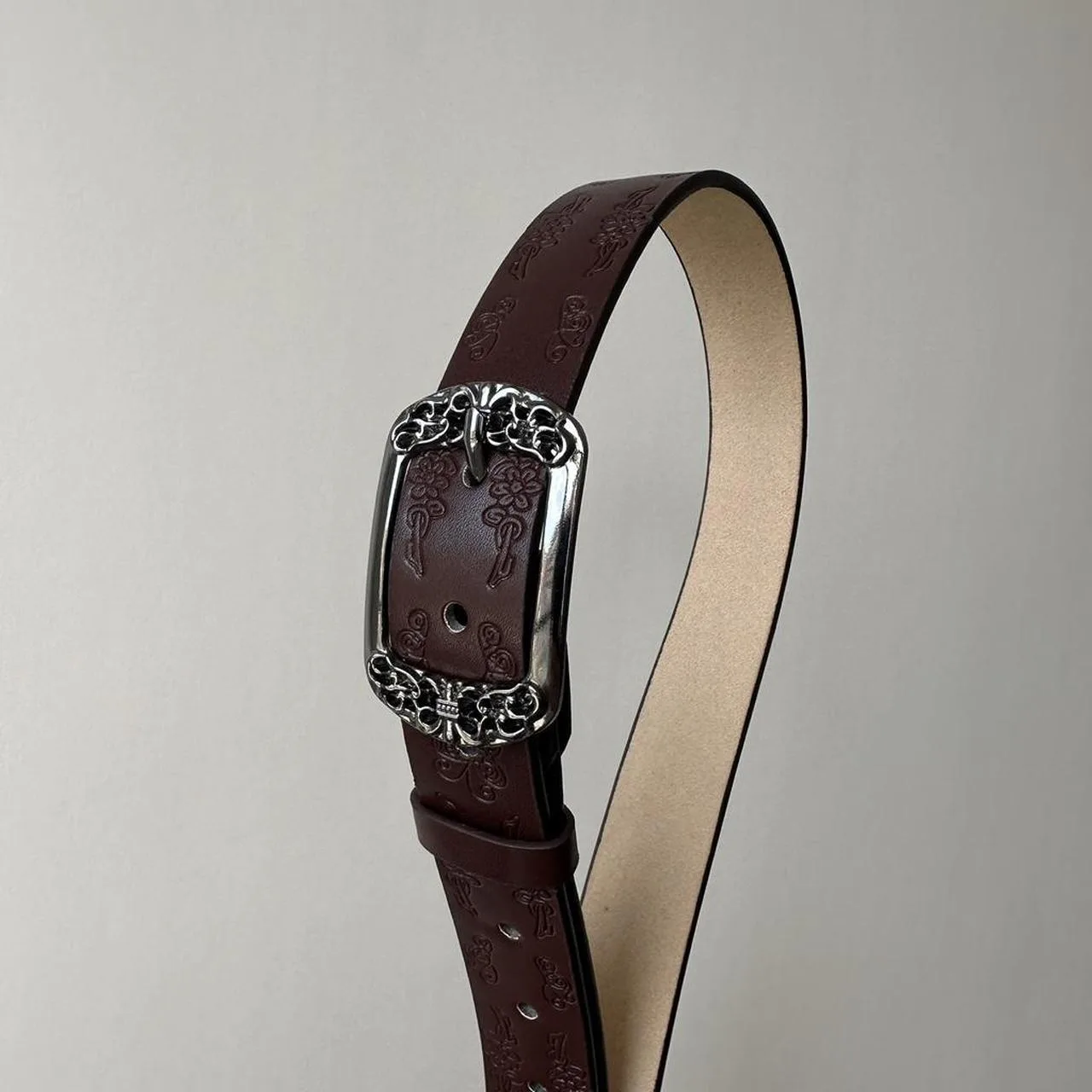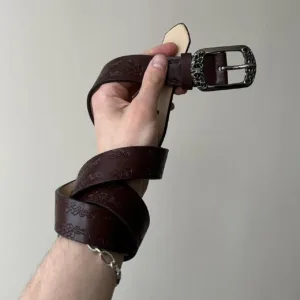 Y2K Brown Western Floral Belt – Unisex – Fits 34”-40”