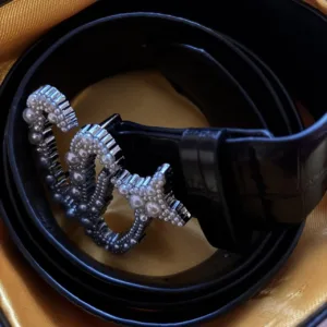 Beautiful pearl buckle and croc print belt Comes with box and bag