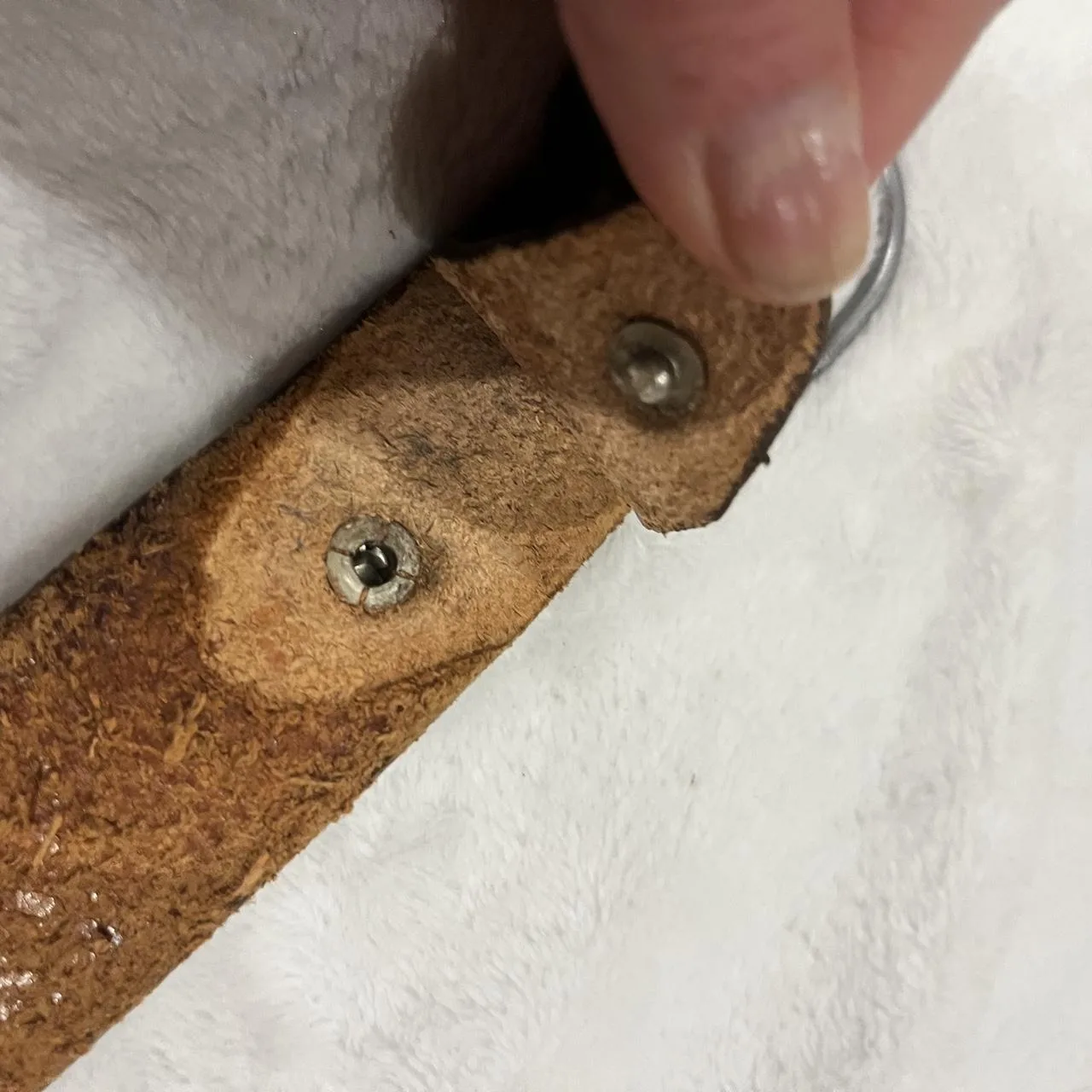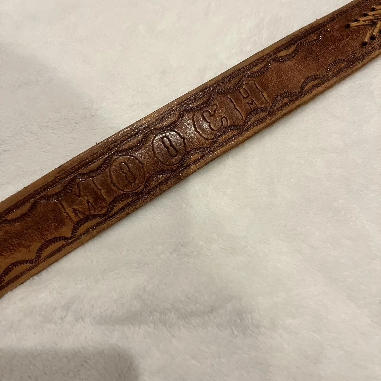 Tooled Brown leather belt with silver buckle which unsnaps to put your own buckle on it. MOOCH stamped on back and intricate design. Larger size see pics #leather #buckle #unique #westernbelt