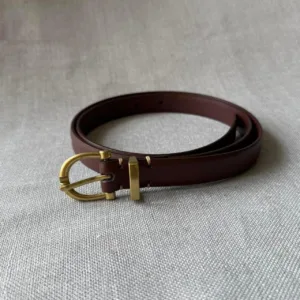 brown vegan leather thin gold buckle western style belt with y2k style