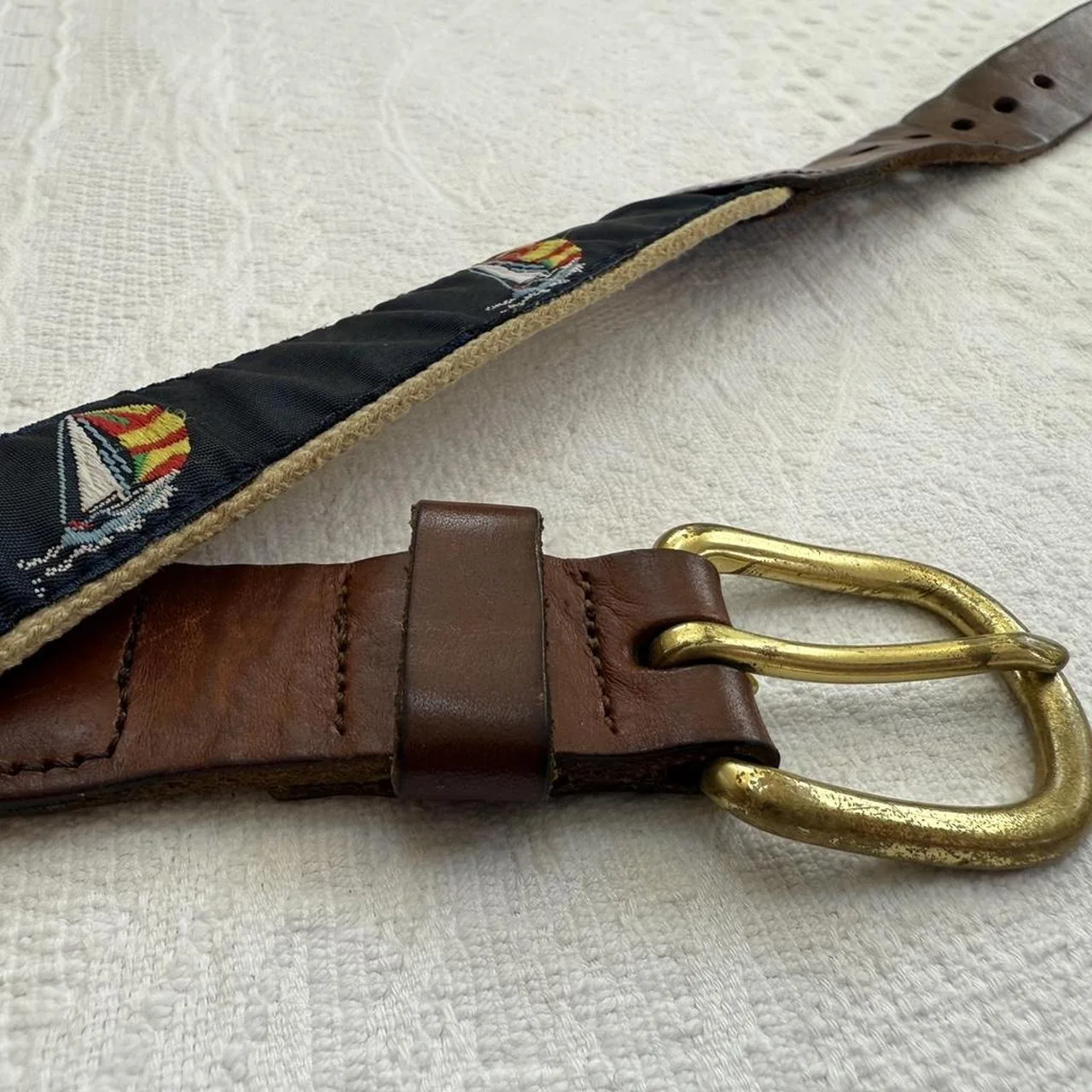 Leatherman Sailboat Nautical Canvas Leather Belt Men’s 36” Preppy
