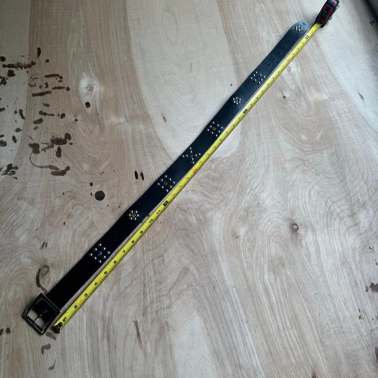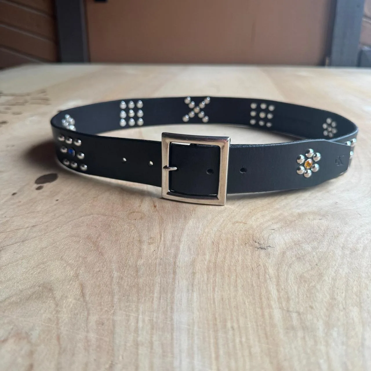 Vintage 1940s Style Custom Handmade Studded Leather Motorcycle Biker Western Belt Size 32 Vtg, 40s. Custom Handmade with sturdy silver rivets on a Calvin Klein Belt Made in USA Size Medium. RRL Ralph Lauren Polo Style Western Leather Belt.