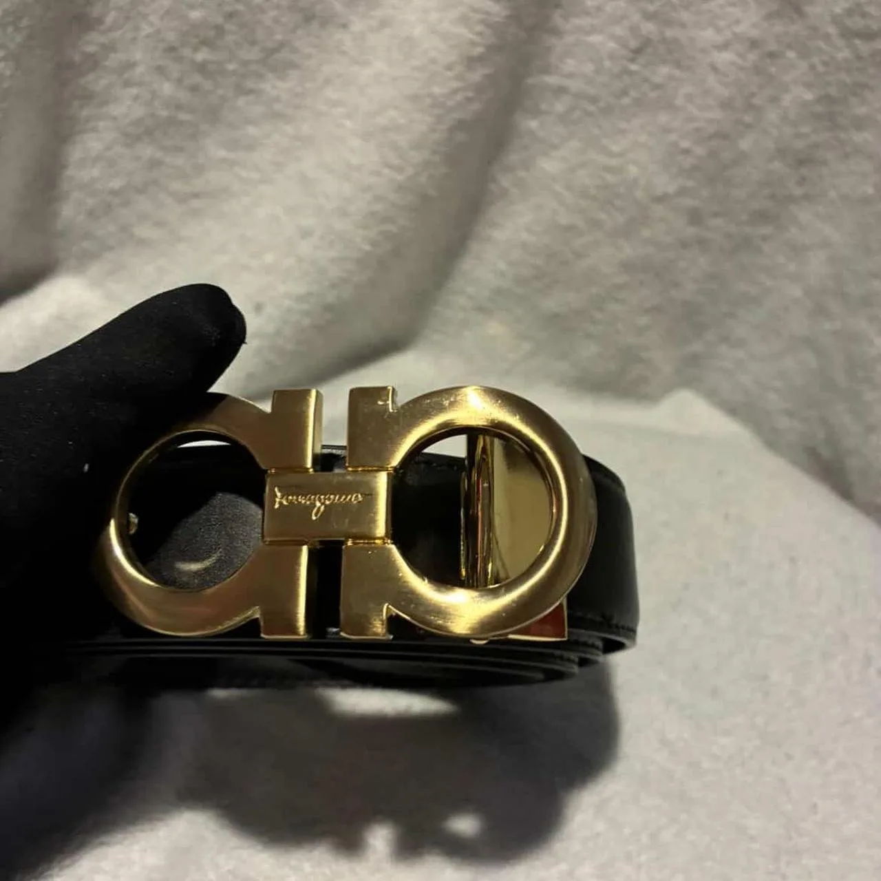 Ferragamo black leather belt with gold buckle #luxury #italian size 40