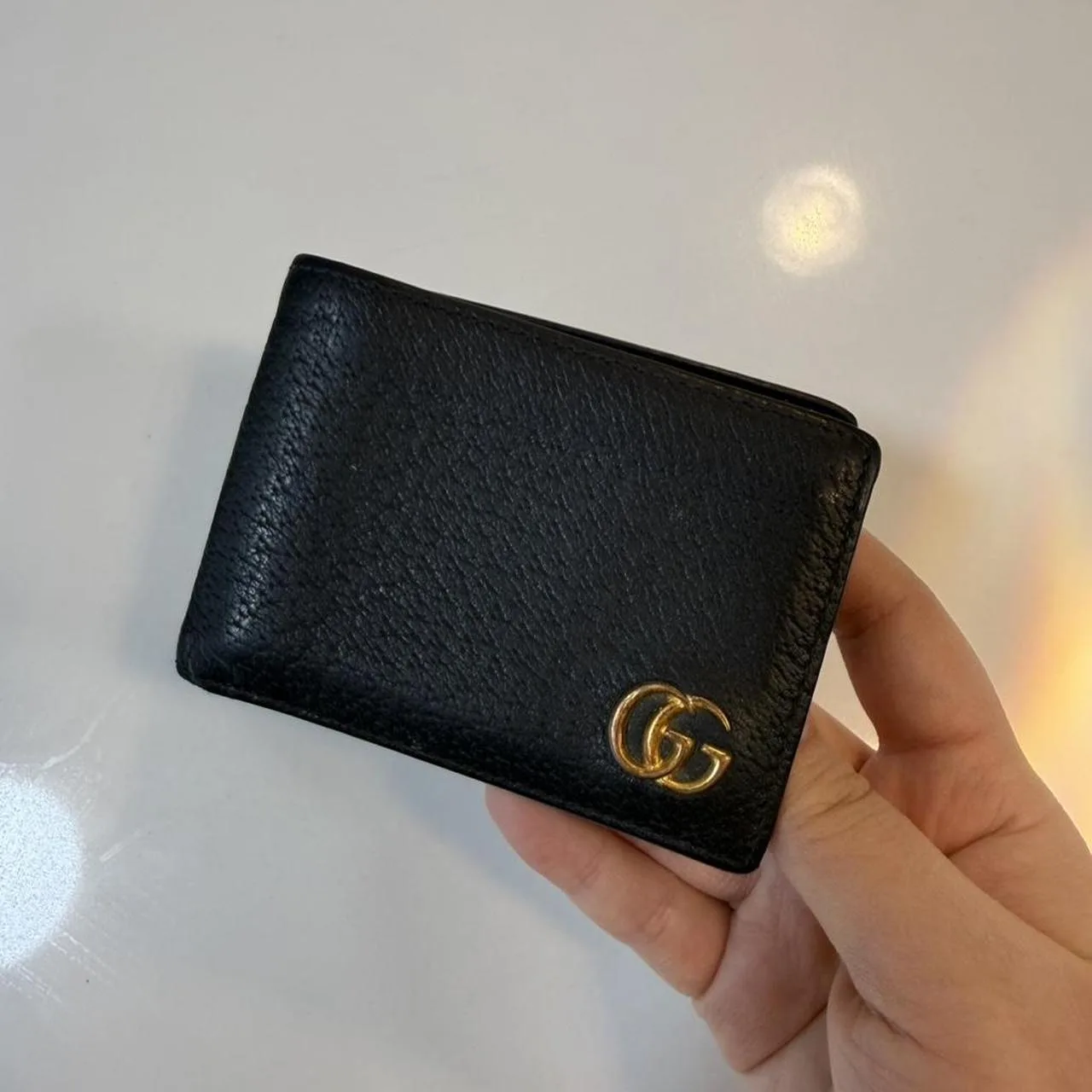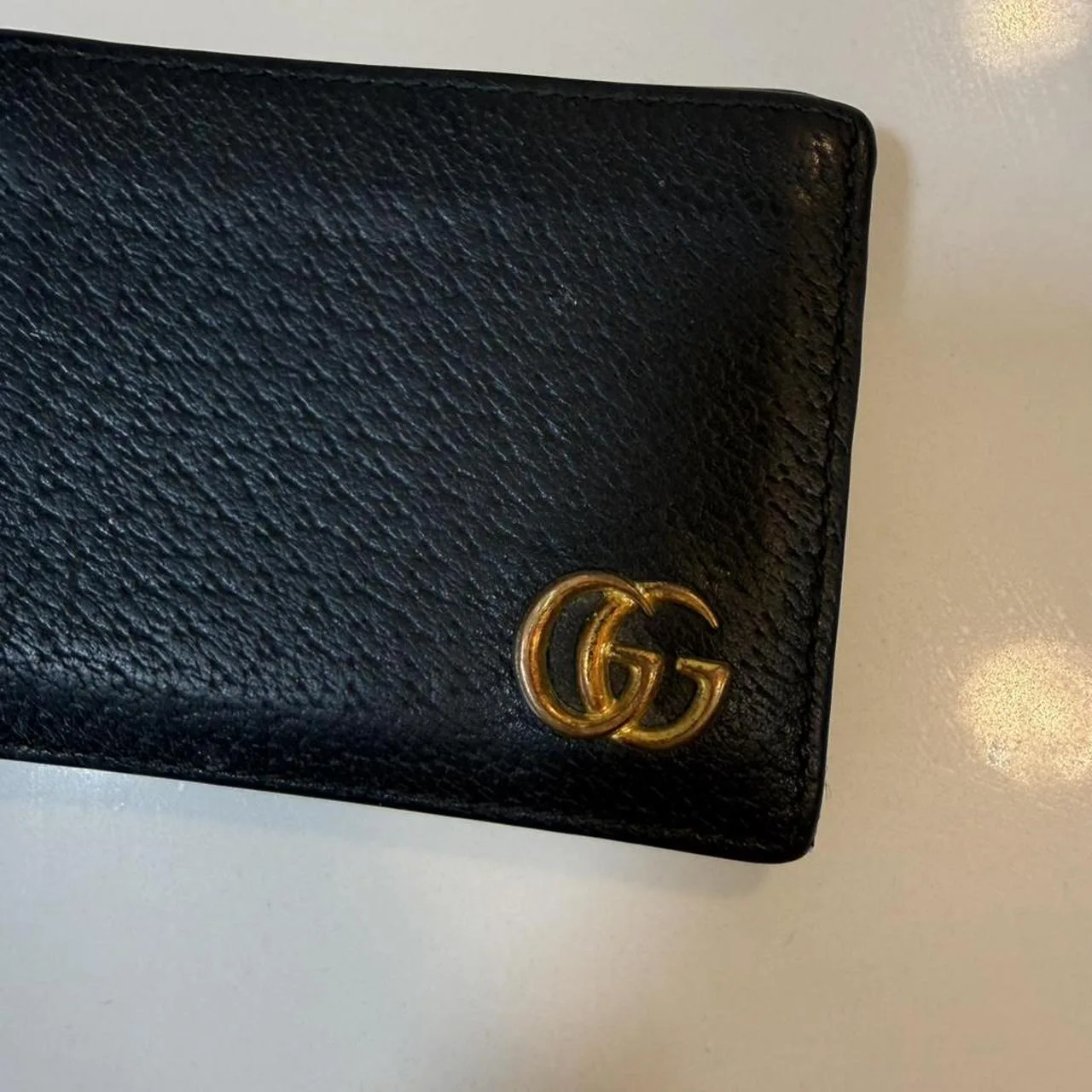 Gucci Black leather wallet with gold logo #luxury #leathergoods #gucci