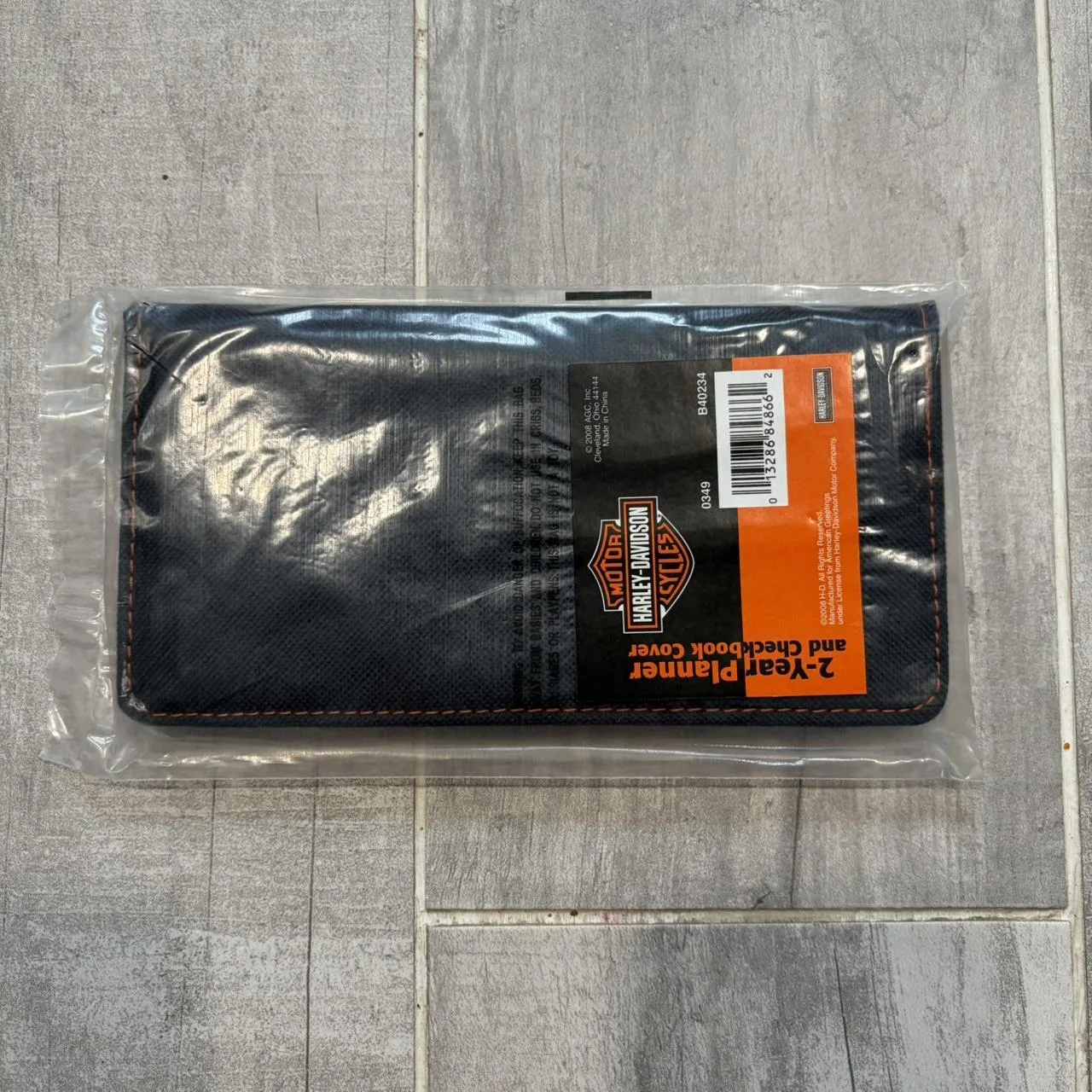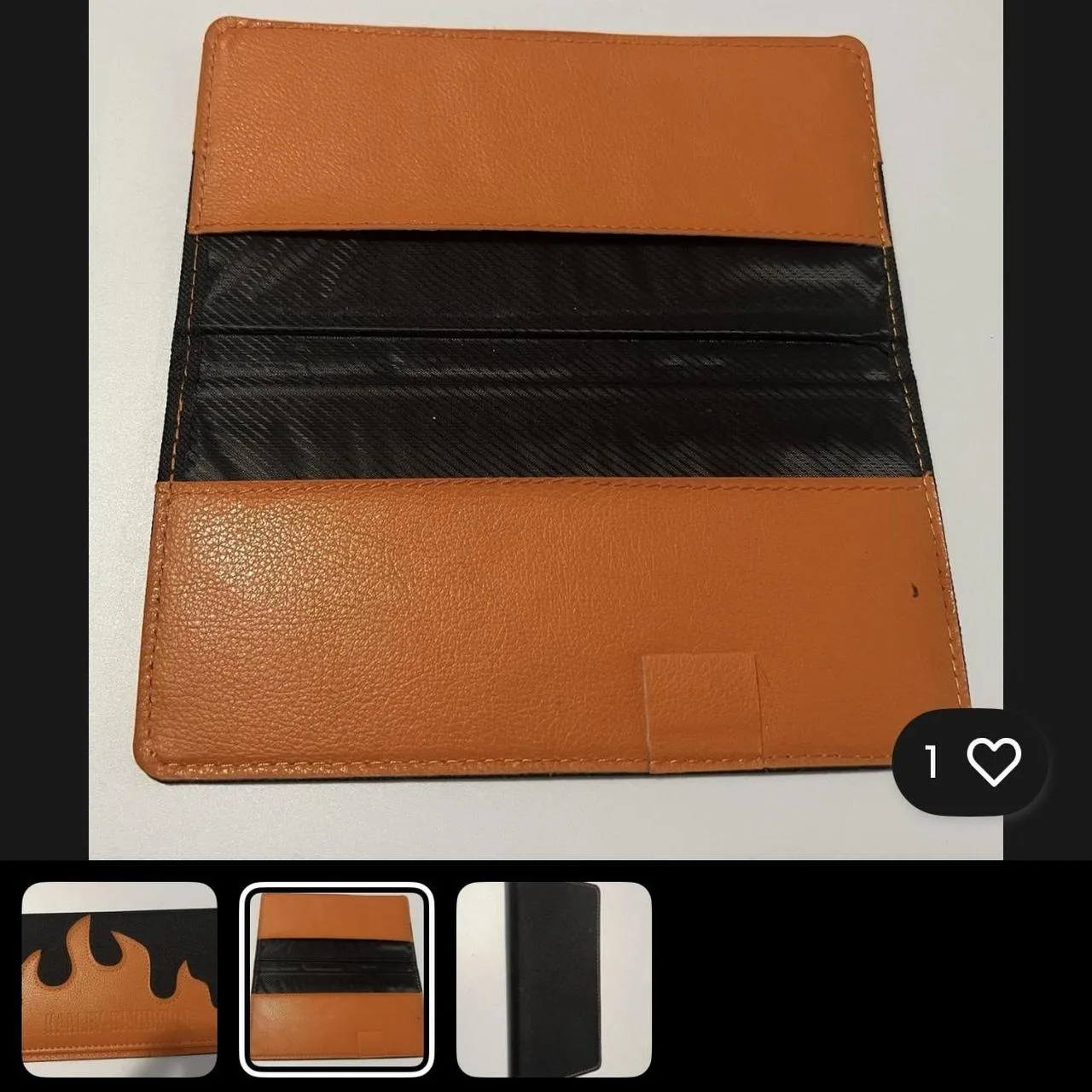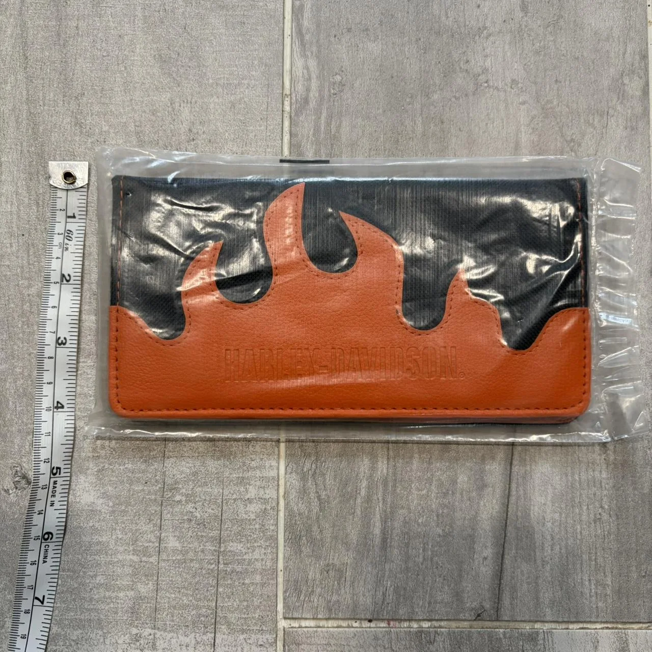 HARLEY-DAVIDSON Flame Orange Leather & Black Canvas Wallet Check Book Cover