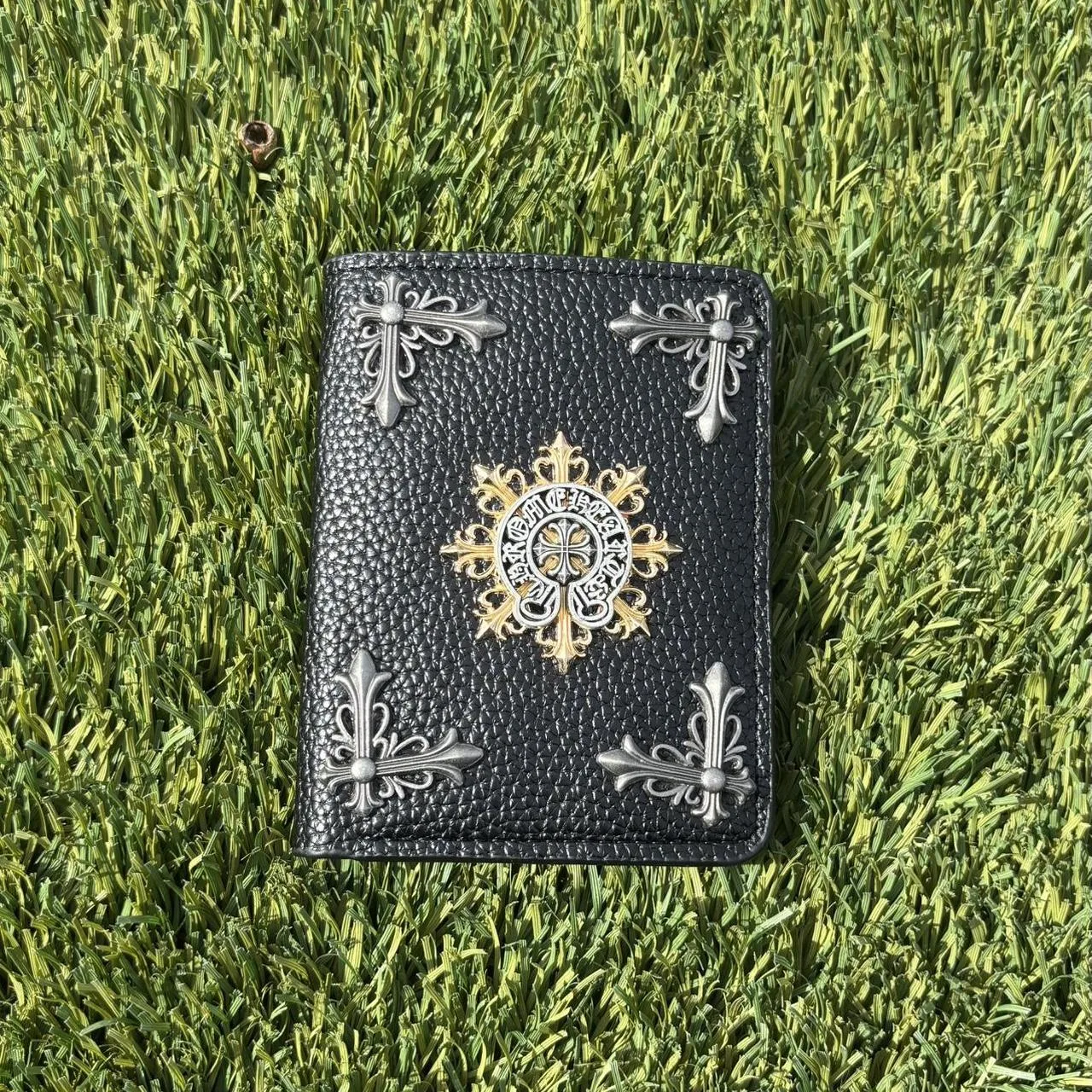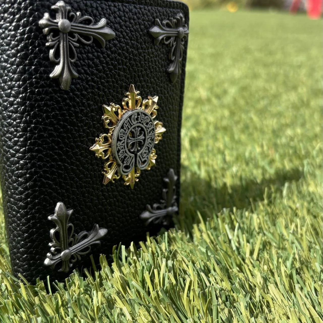 Black leather CH wallet with gold and silver accents #Wallets