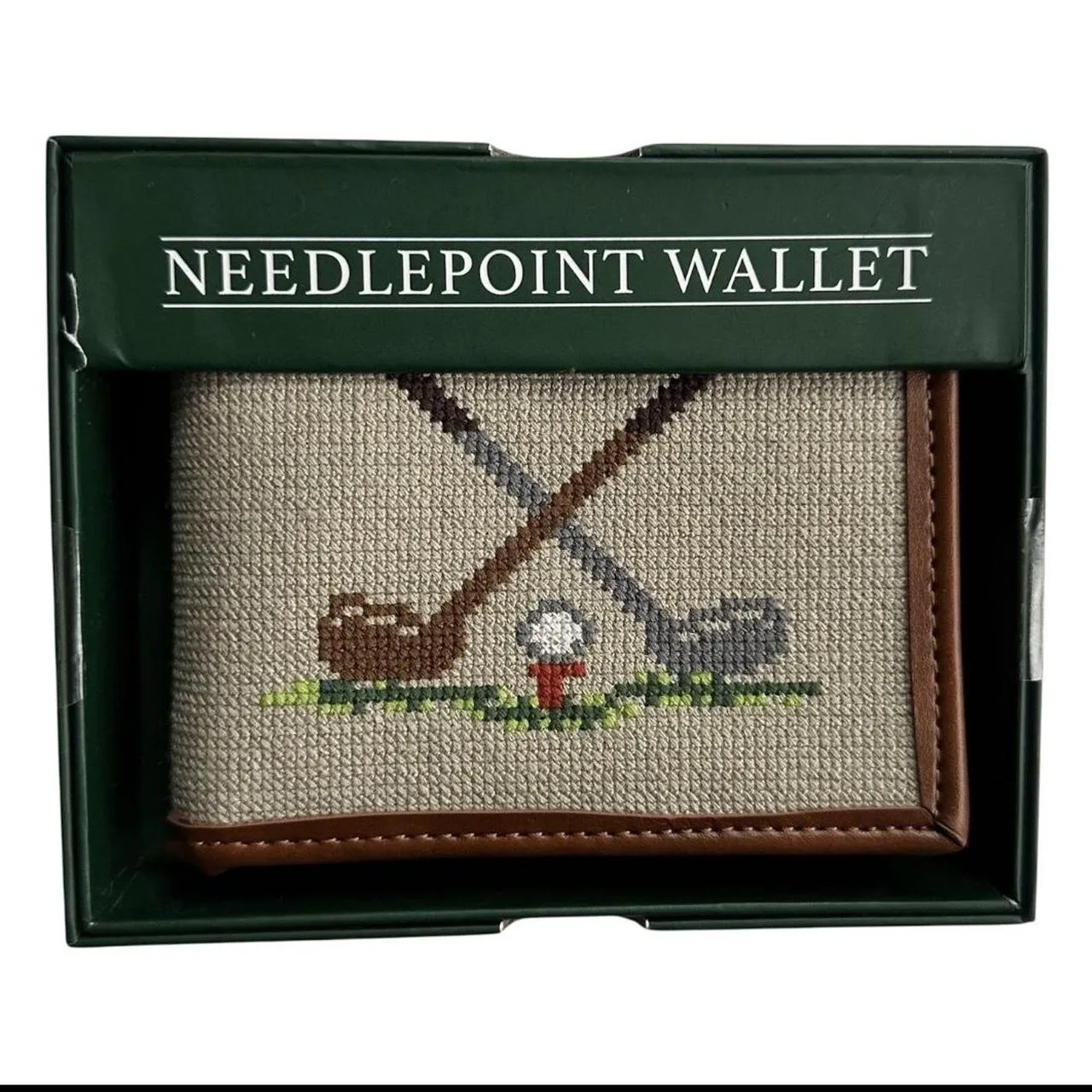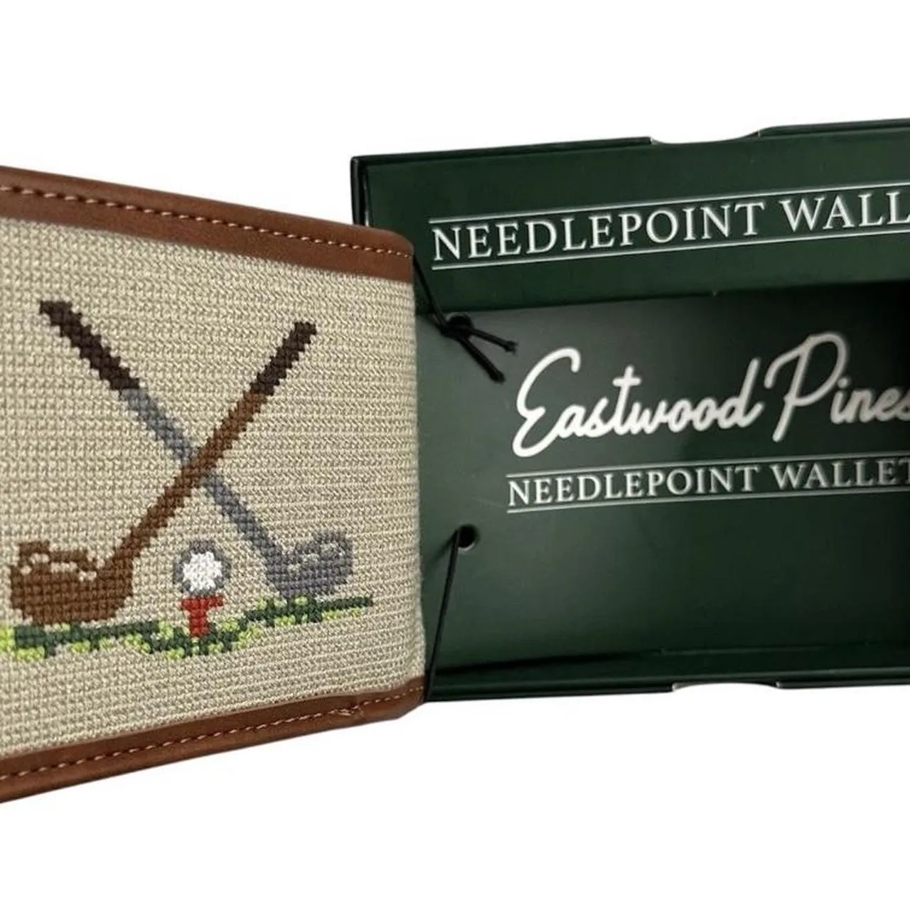 Eastwood Pines Needlepoint Wallet Golf Clubs Genuine Leather Trim Art Card Holder