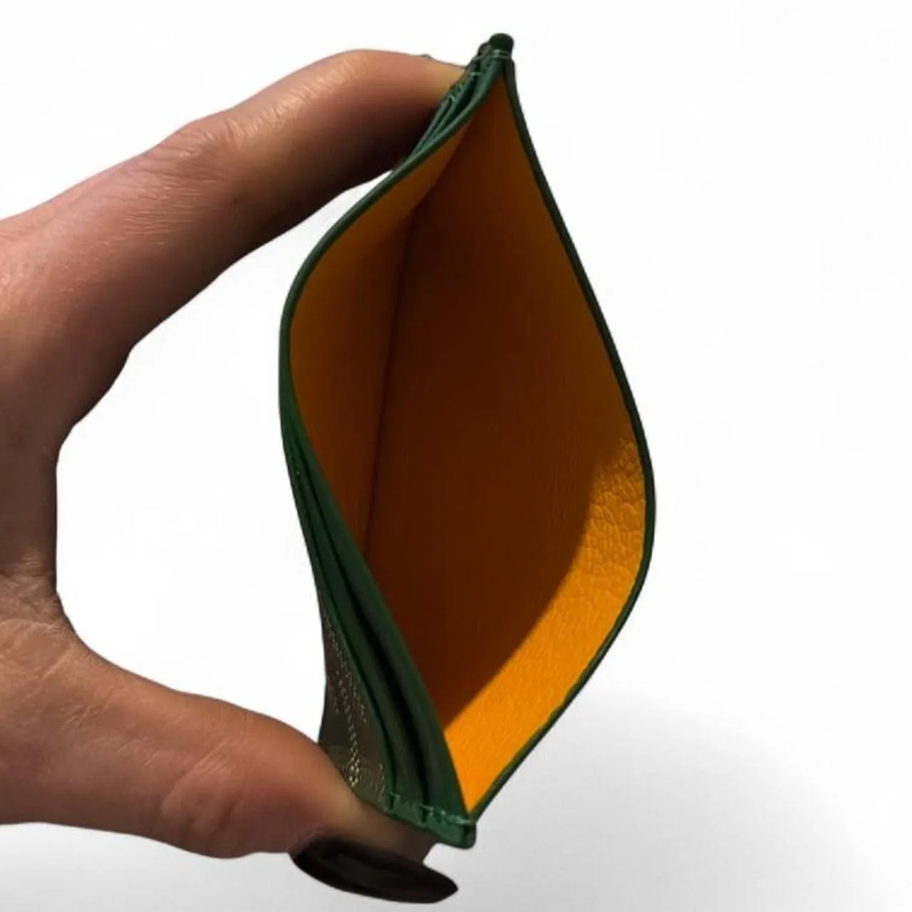Never used green leather cardholder wallet. 2 card slots on each side and a center slot for cash or more cards. No box or dust cover. #green #leathergoods #wallet