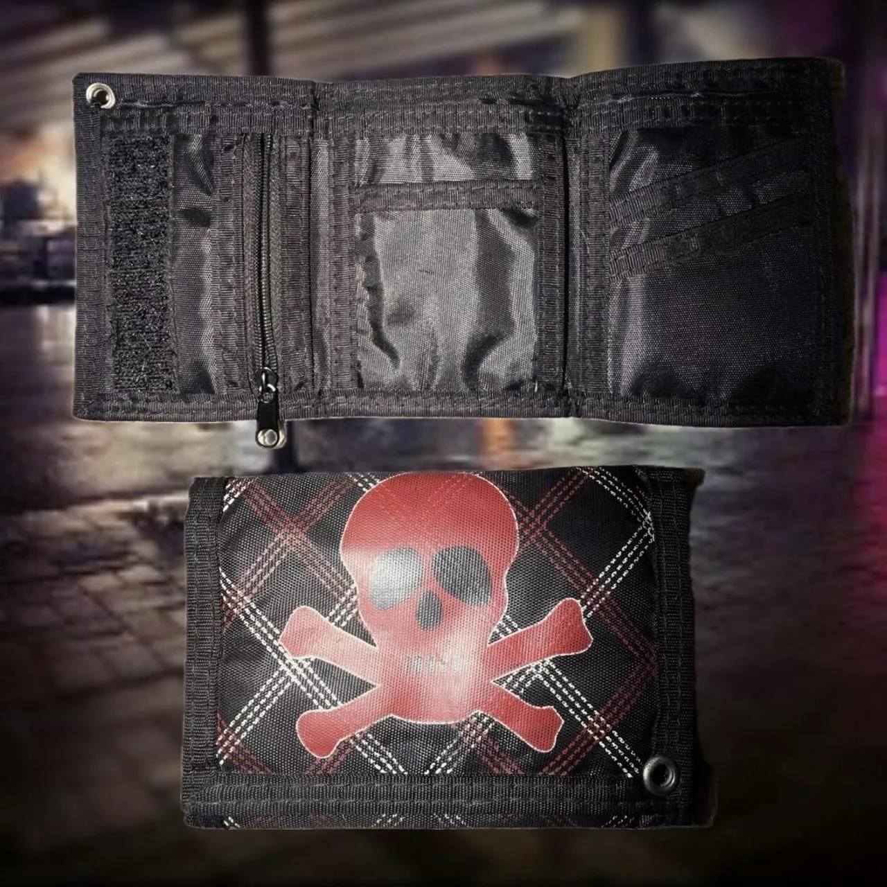 Red/black skull and crossbones plaid wallet #punk #grunge #skater