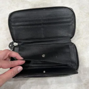 Black leather wallet with silver hardware coin zipper stuck #luxury #leathergoods