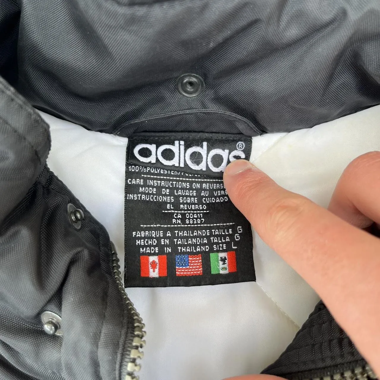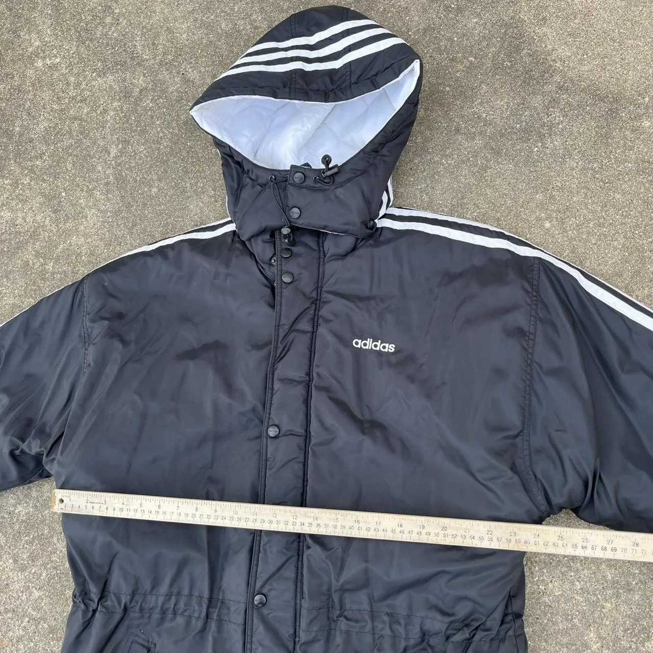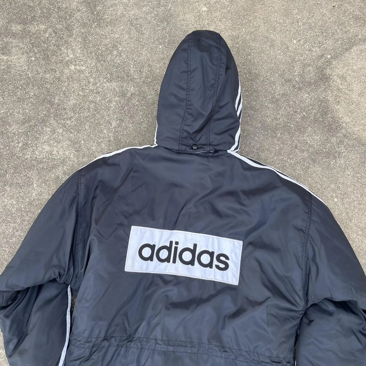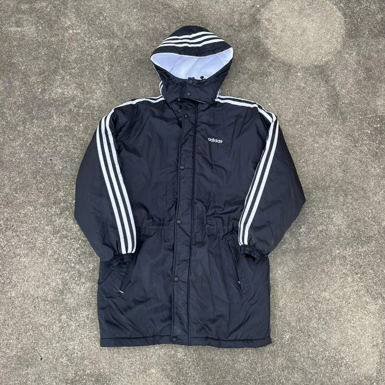 90s Adidas black puffer trench coat