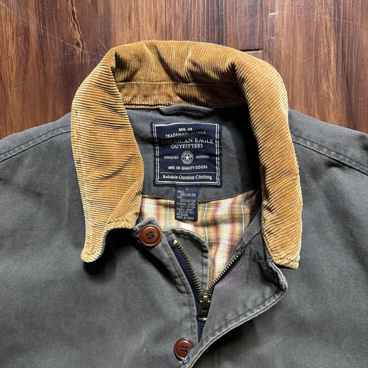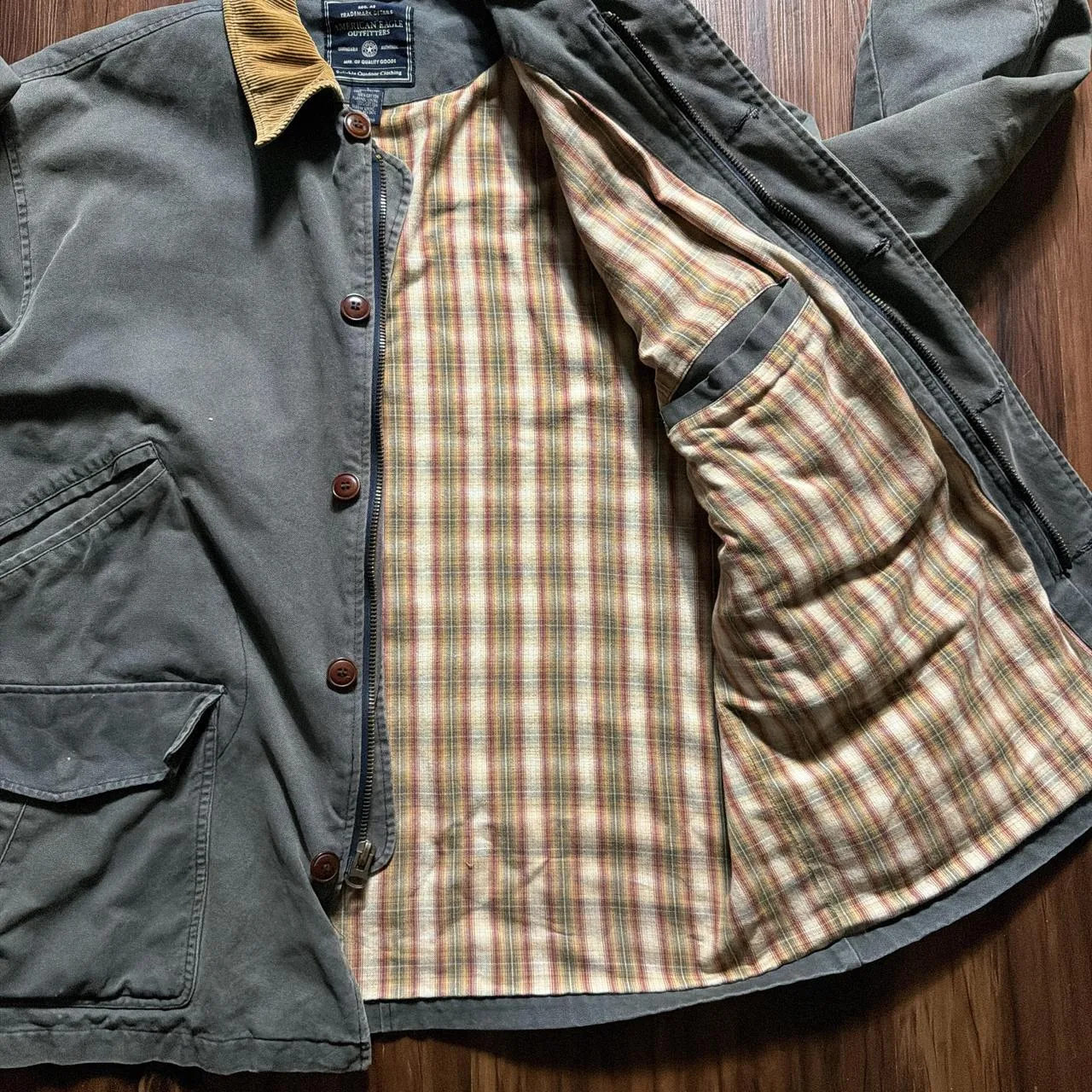 Vintage American eagle outfitters flannel lined olive green chore coat size L