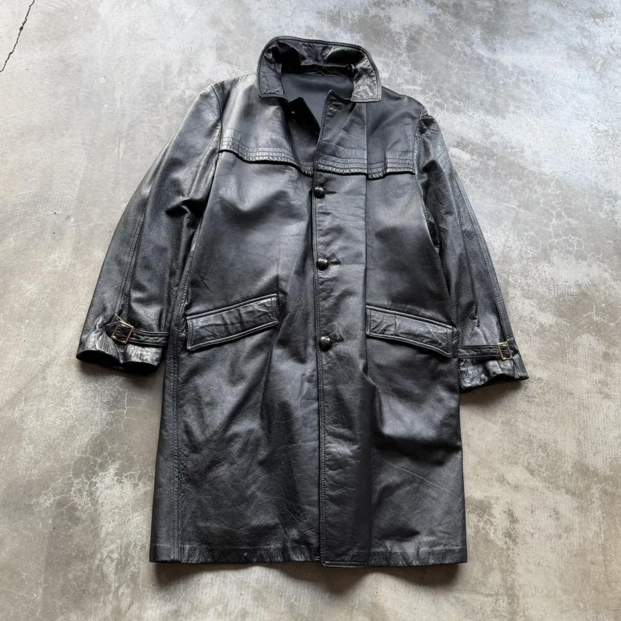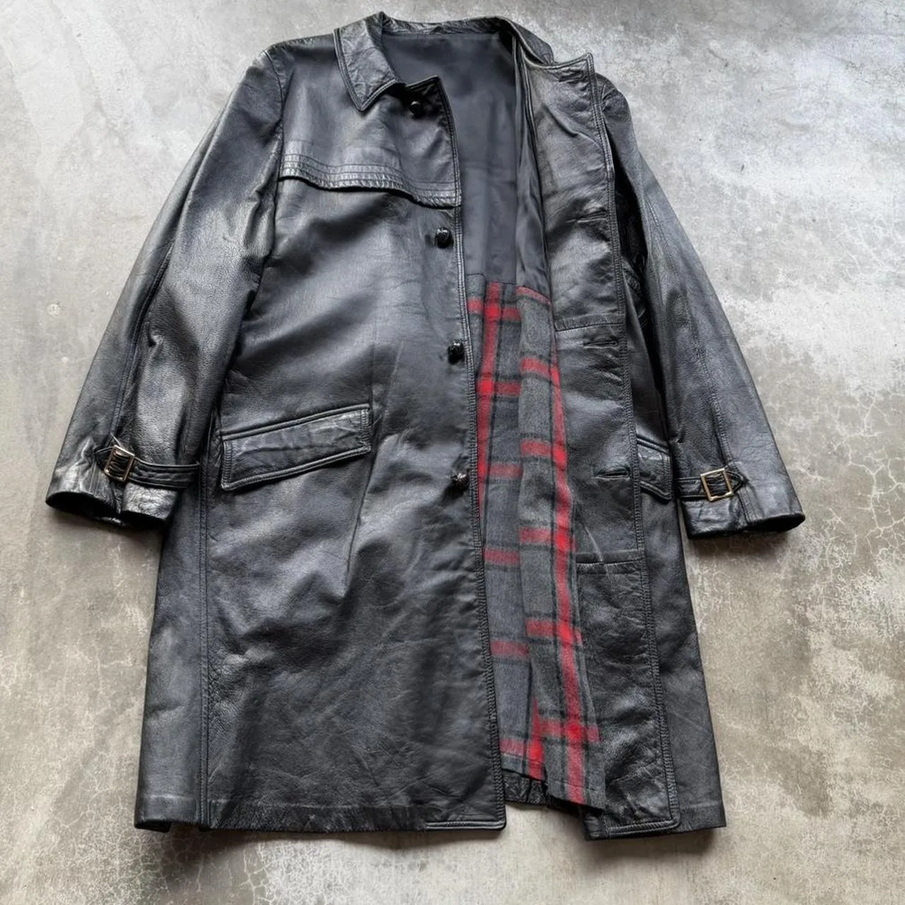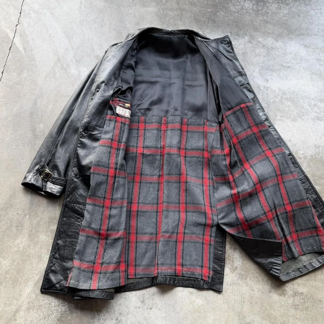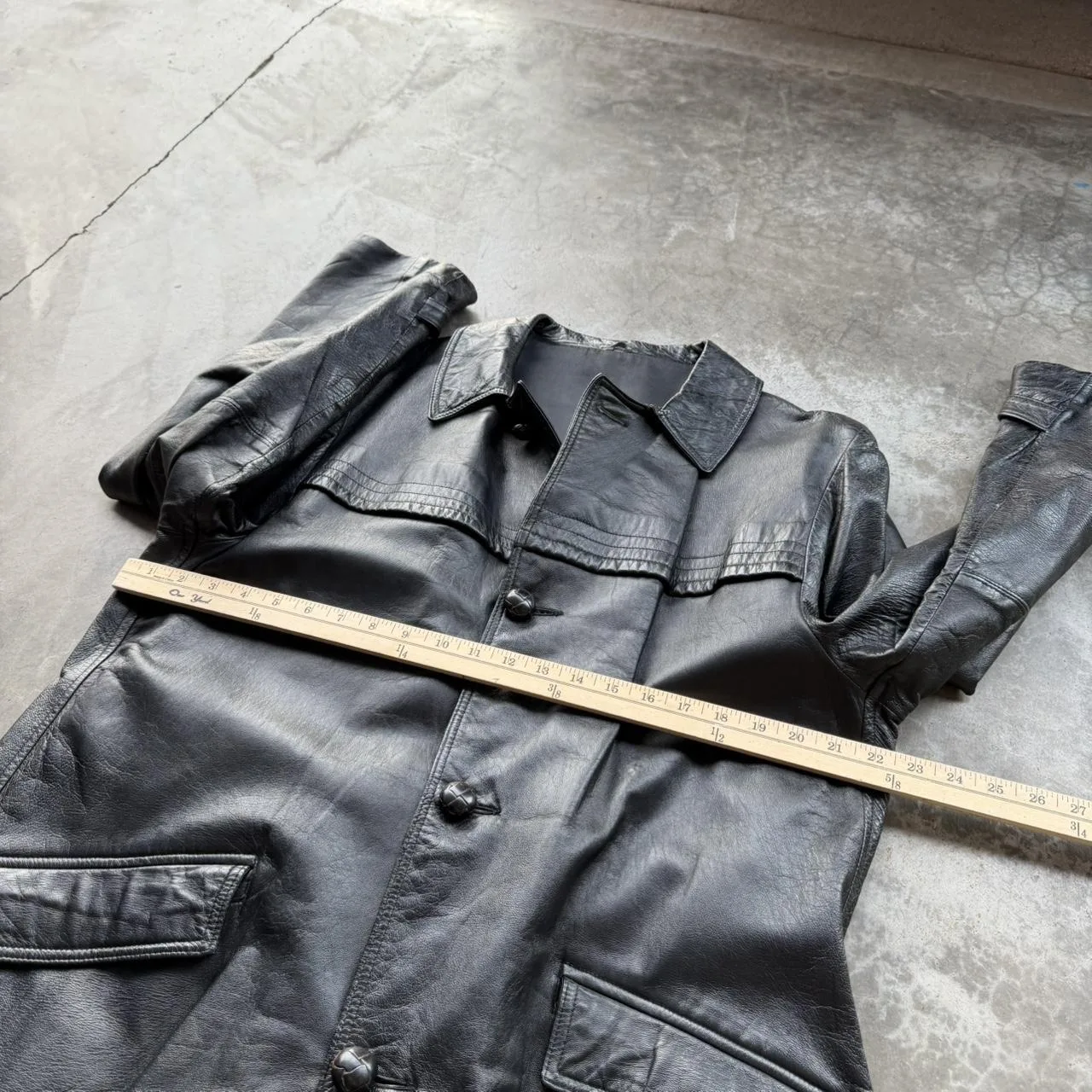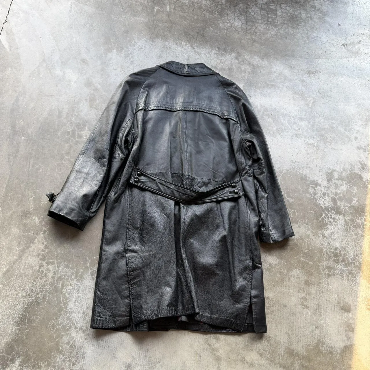 Vintage 1970’s Black Leather Wool lined trench duster long coat jacket
