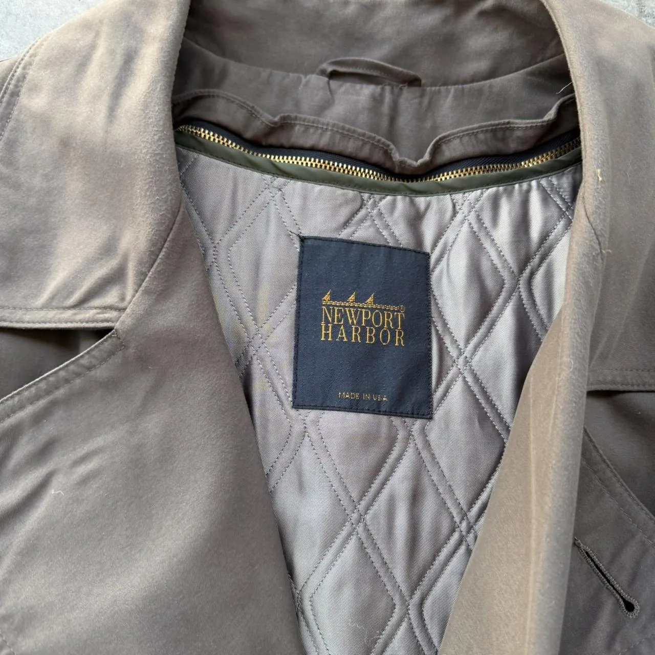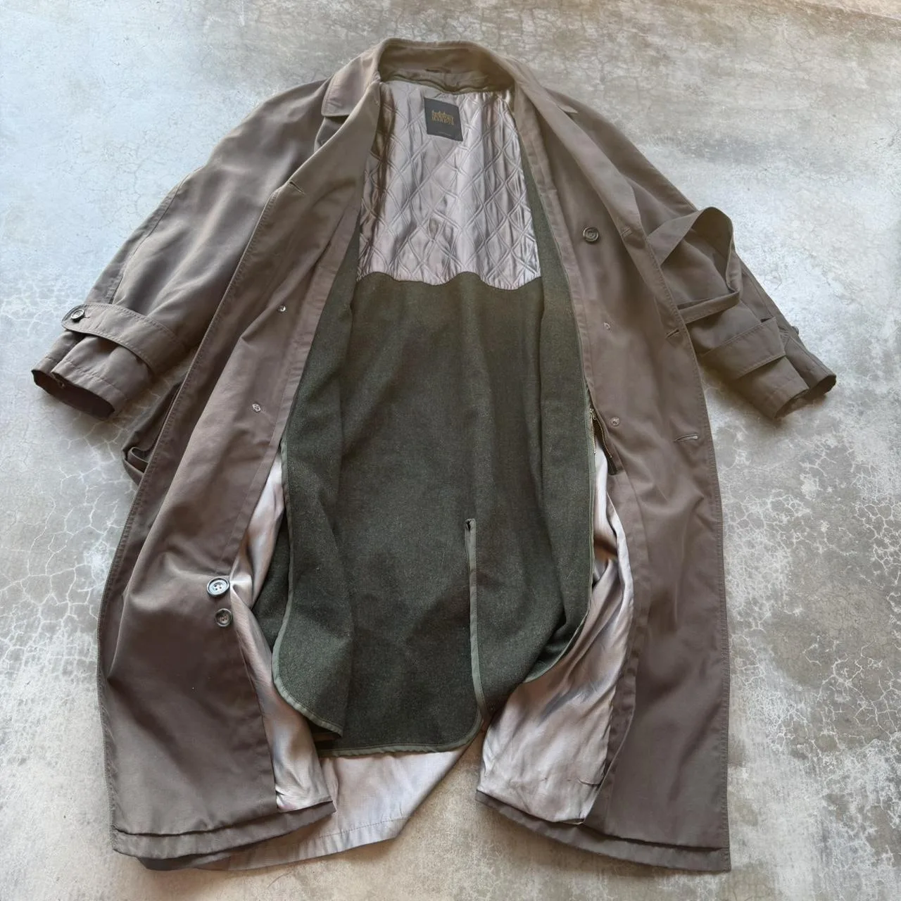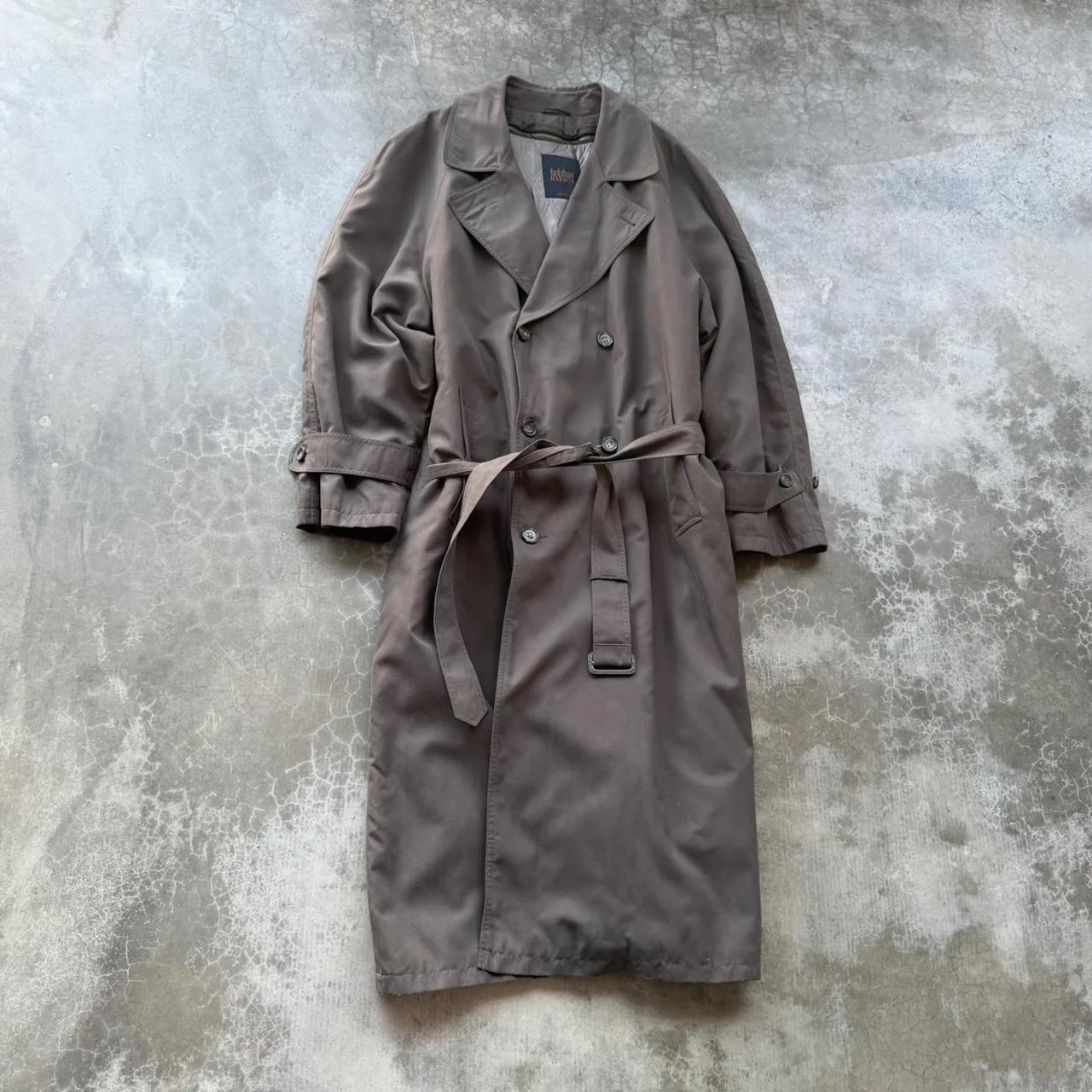 Vintage 90’s Brown Newport Harbor MADE IN USA brown long double breasted belted trench over coat wool lined (removable)