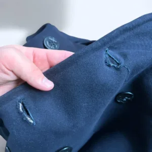 Only noticeable flaws are some distressing around the button holes of the jacket like pictured and i