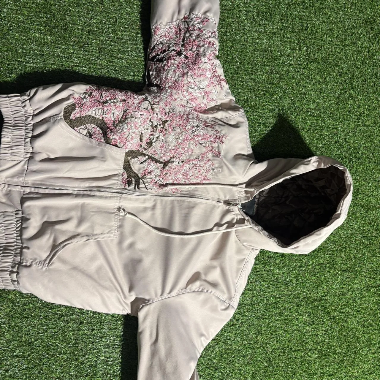 cool dershutze pink cherry blossom workwear coat