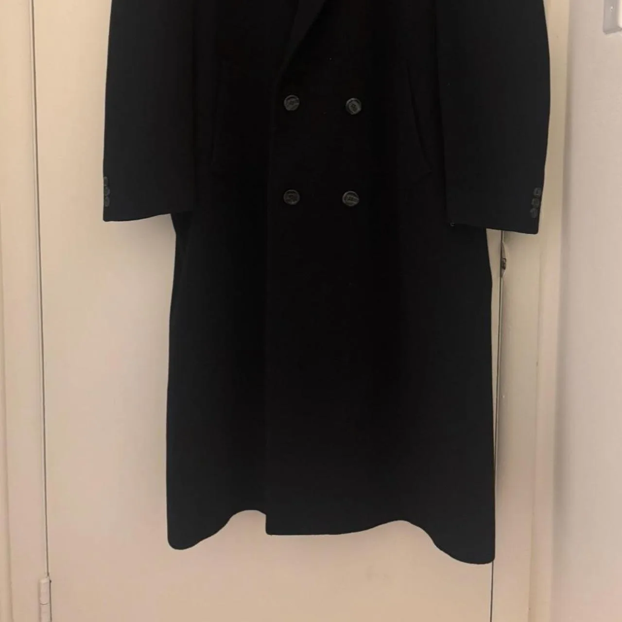 Cashmere Wool DB Double Breasted Coat Men’s 44R Black Long