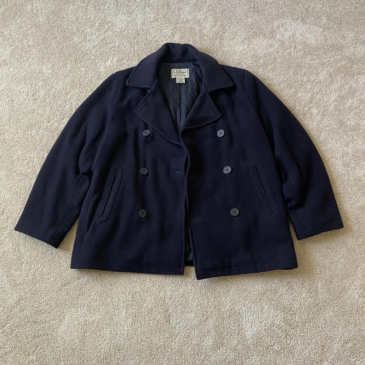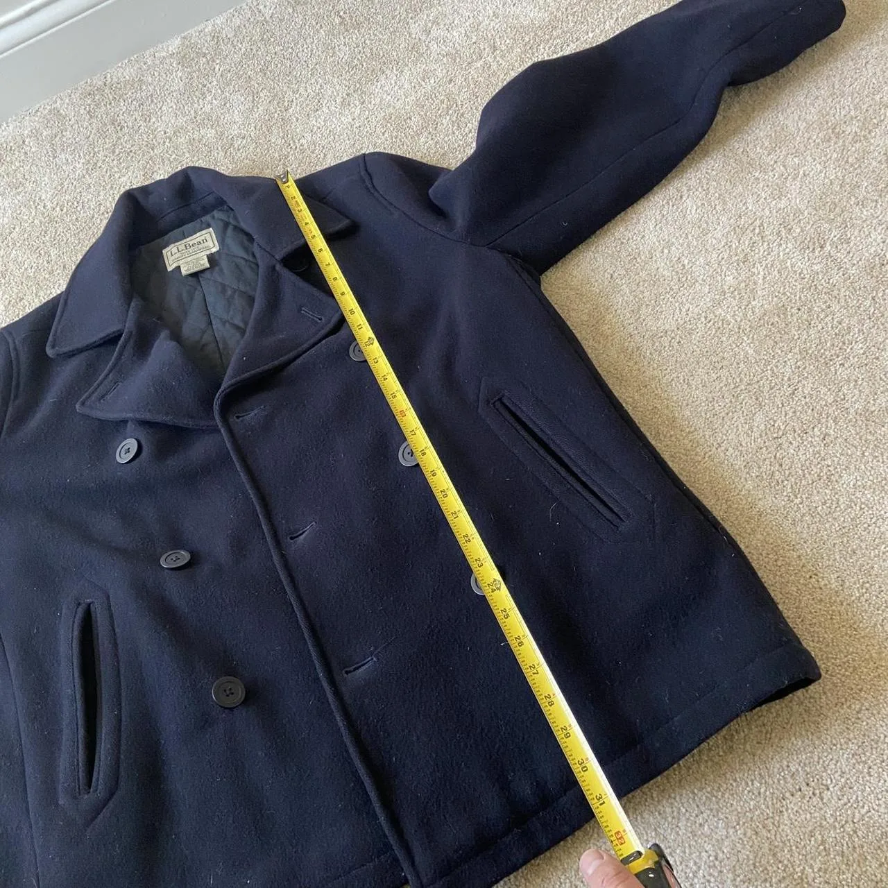 Vintage L.L. Bean Navy Blue Double Breasted Wool Coat Size Men’s Large