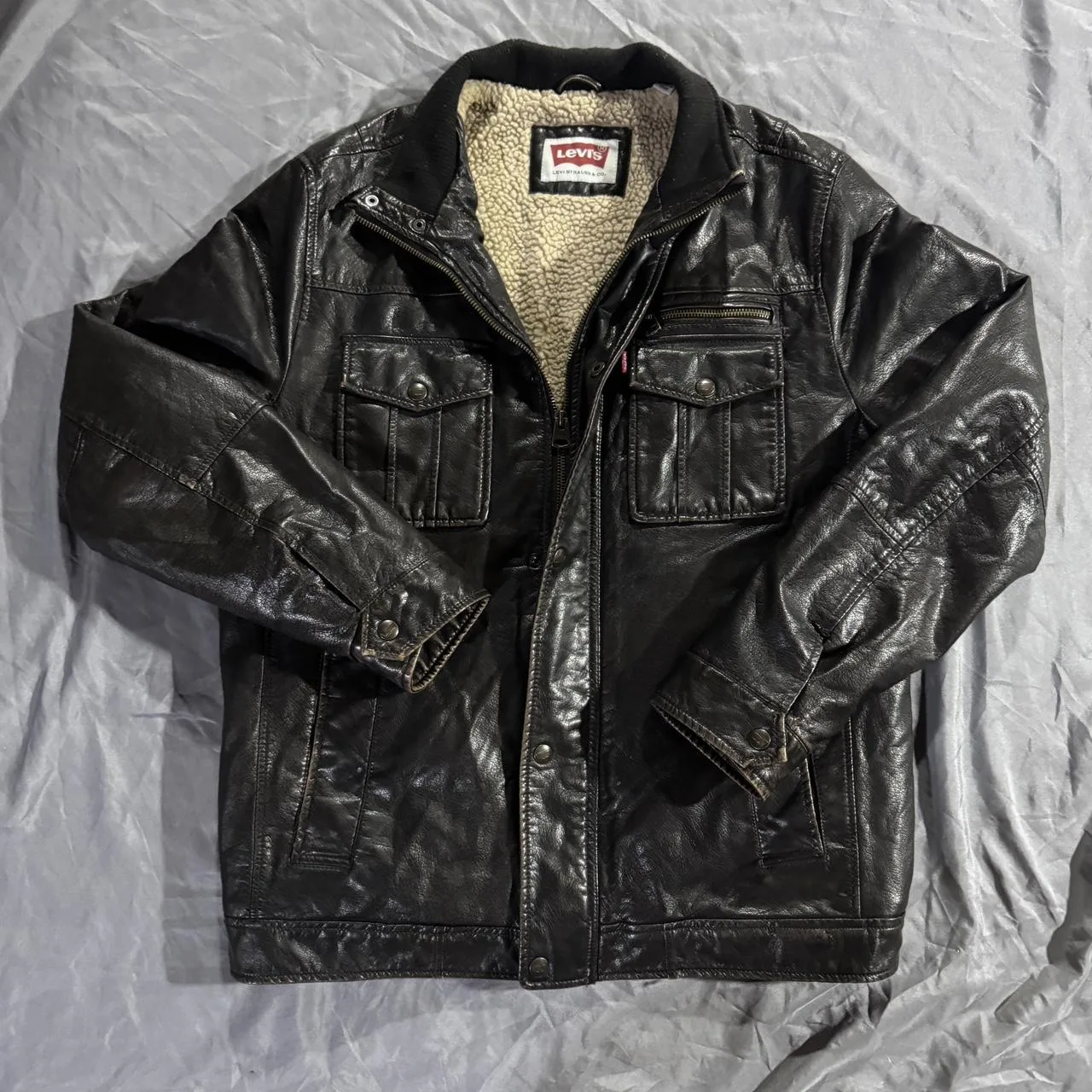 Vintage Levi’s Men’s Brown Bomber Jacket Sherpa Lined Size Medium, in good condition, comes from a smoke free home, the leather does show signs of wear, but there are no marks, tears, or stains on the jacket. Would be perfect for the colder months.