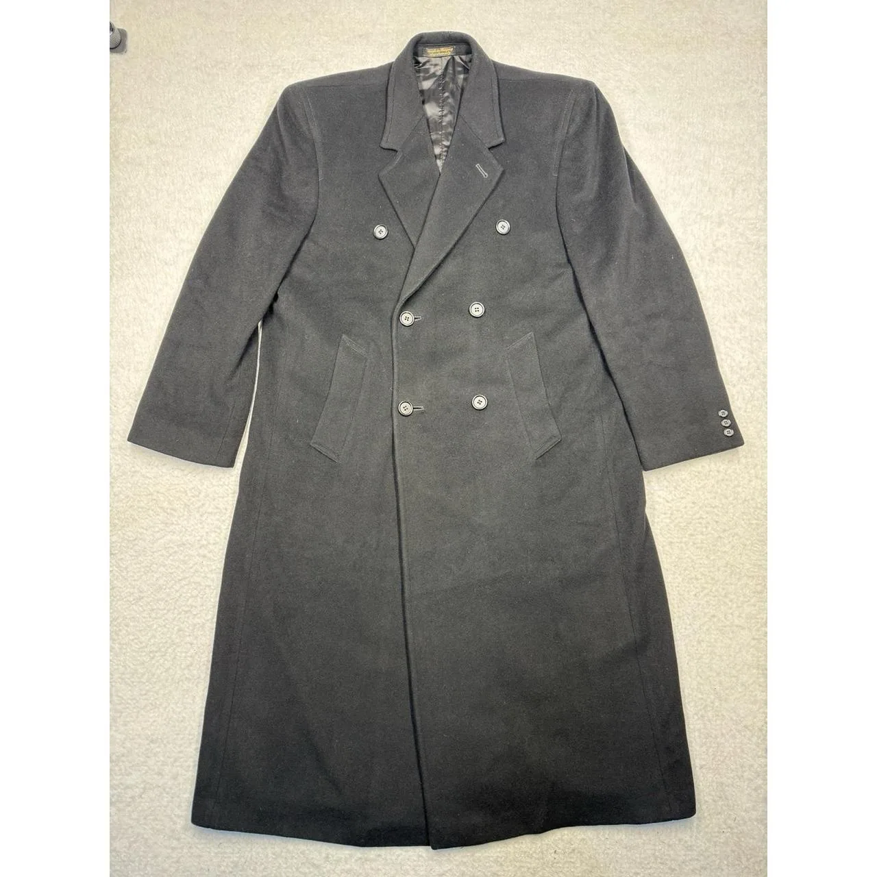 Gianfranco Ruffini Men’s Wool Blend Black Trench Coat Italy Made Lined Size 42R