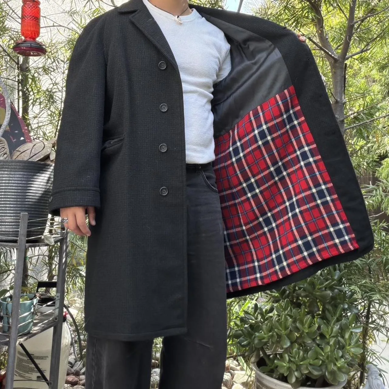 True Vintage Overcoat Tween Trench Coat Black Wool Button Front Marty Supreme Peaky Blinders