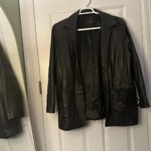 Thrifted Black leather coat.