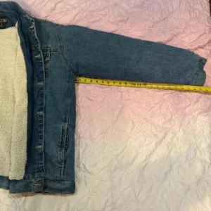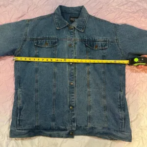 90s vintage blue denim trucker jacket with a faux shearling lining and oversized fit #denim #jacket #90s #grunge #hiphop
