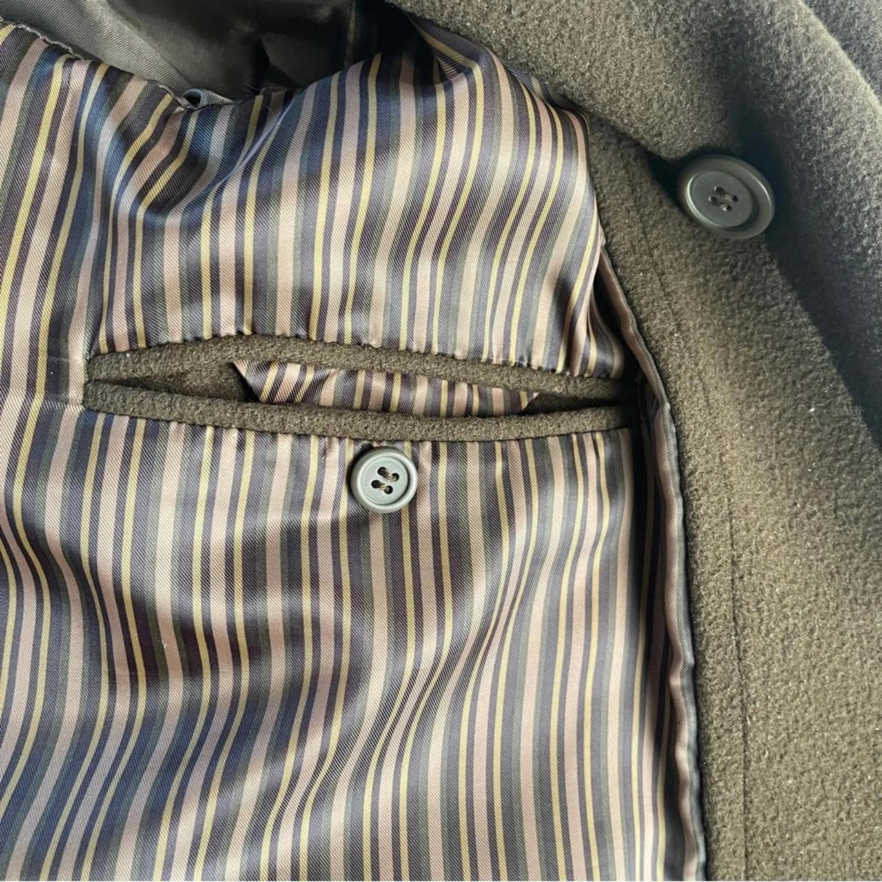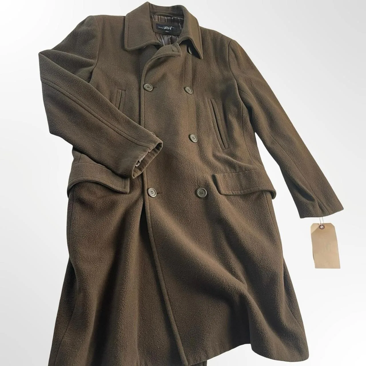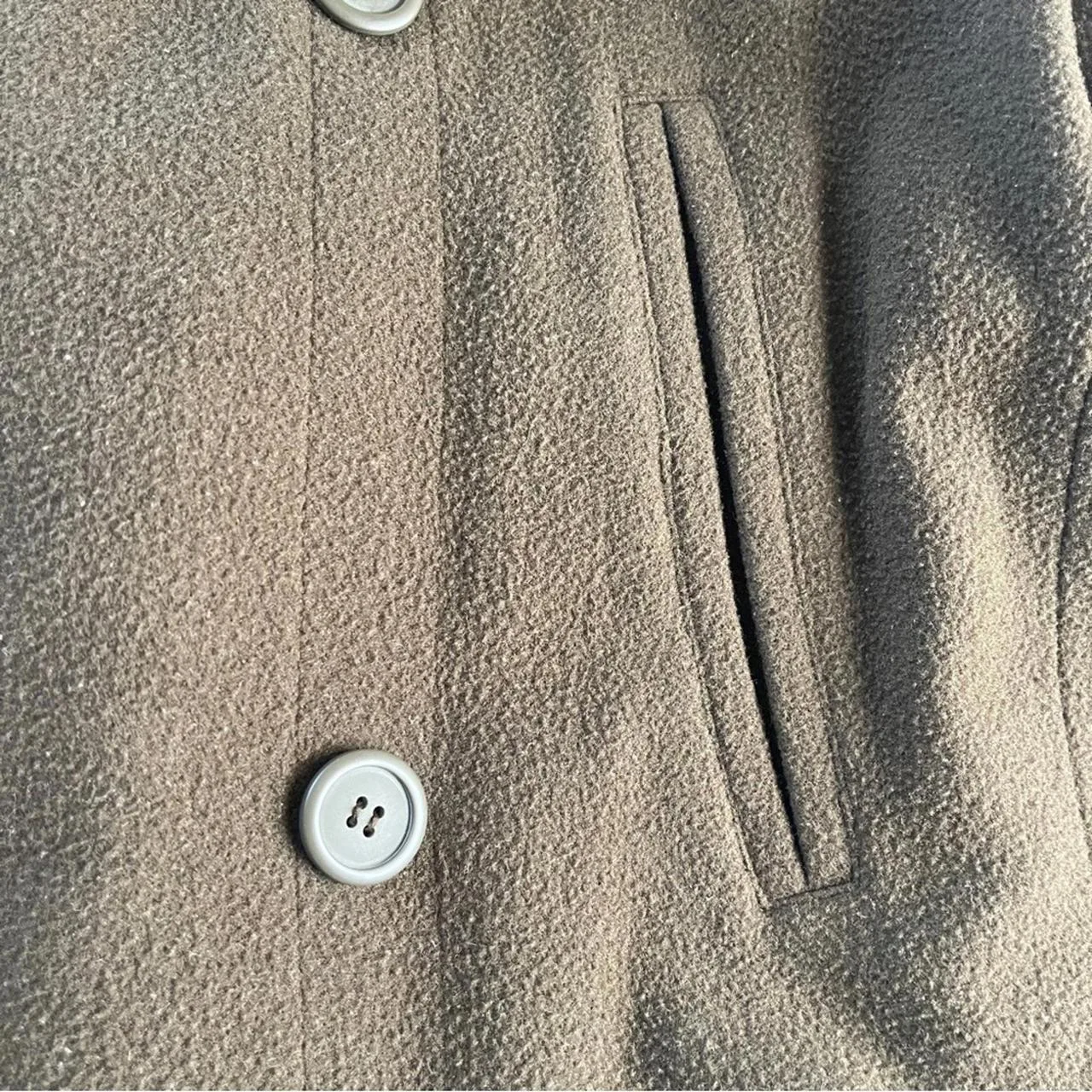 In absolute mint condition dark khaki color, wool coat please see Photos for measurements