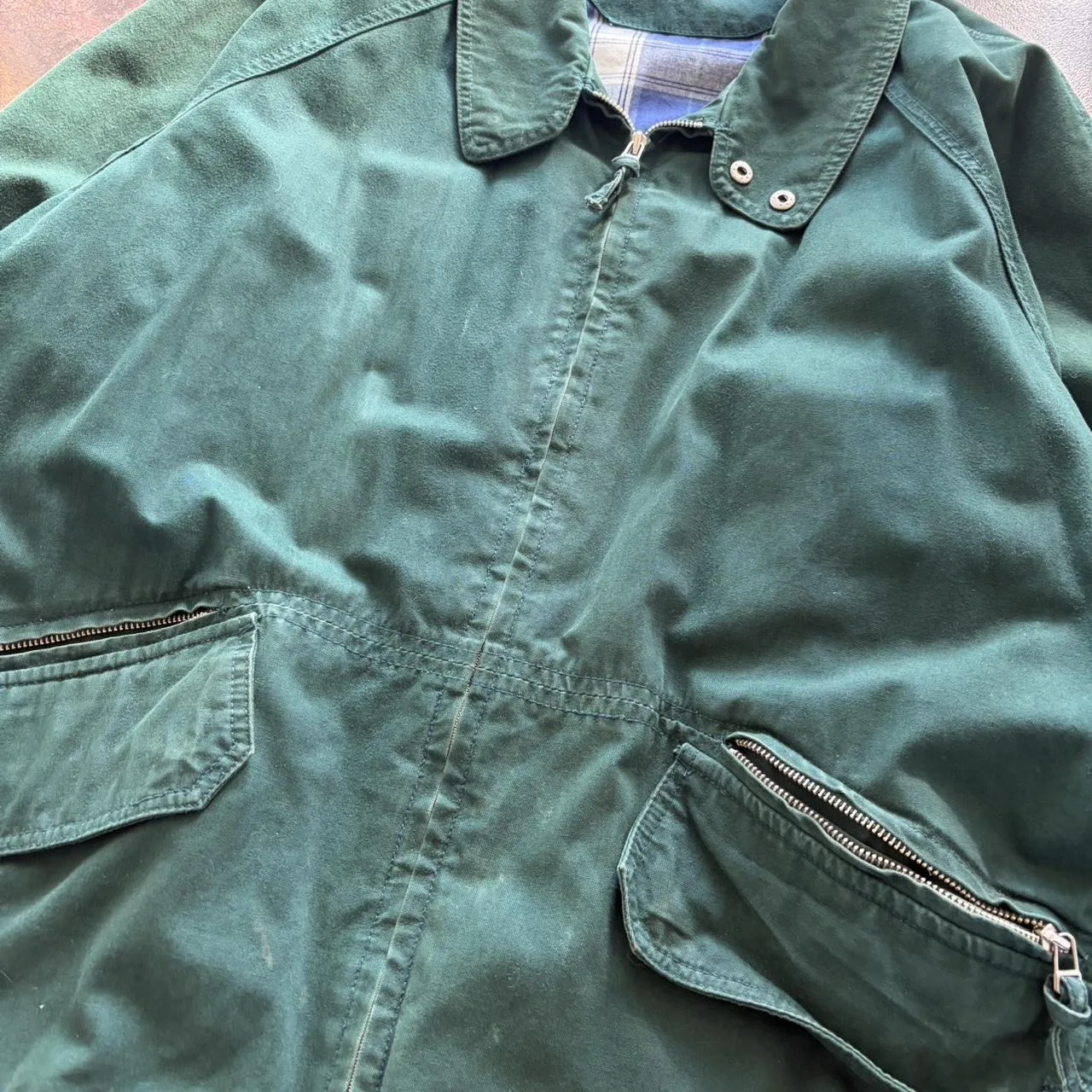 Vintage 90s/00s canvas barn chore coat in nice green color. Overall wear and light fade