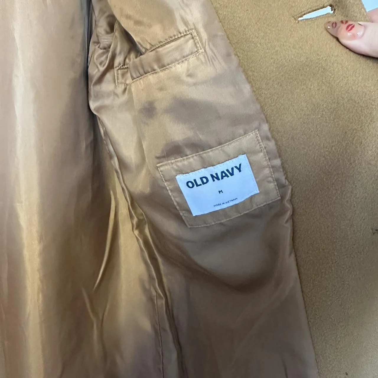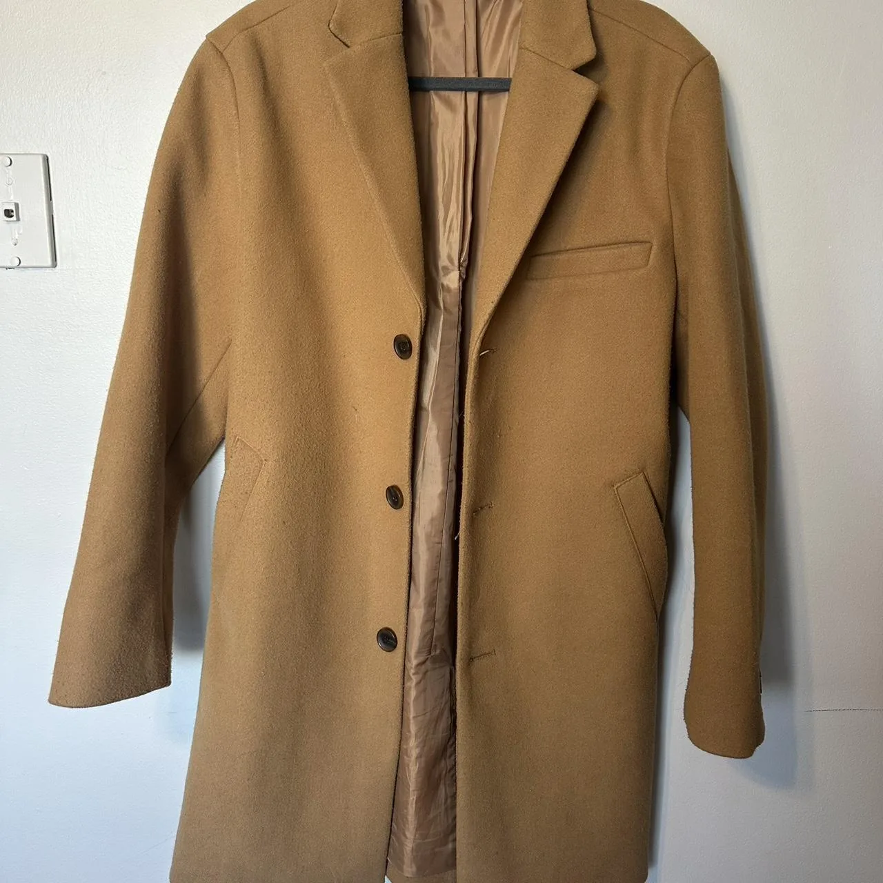 Old Navy tan overcoat Size M #outerwear #winter has some minor pulling on the front