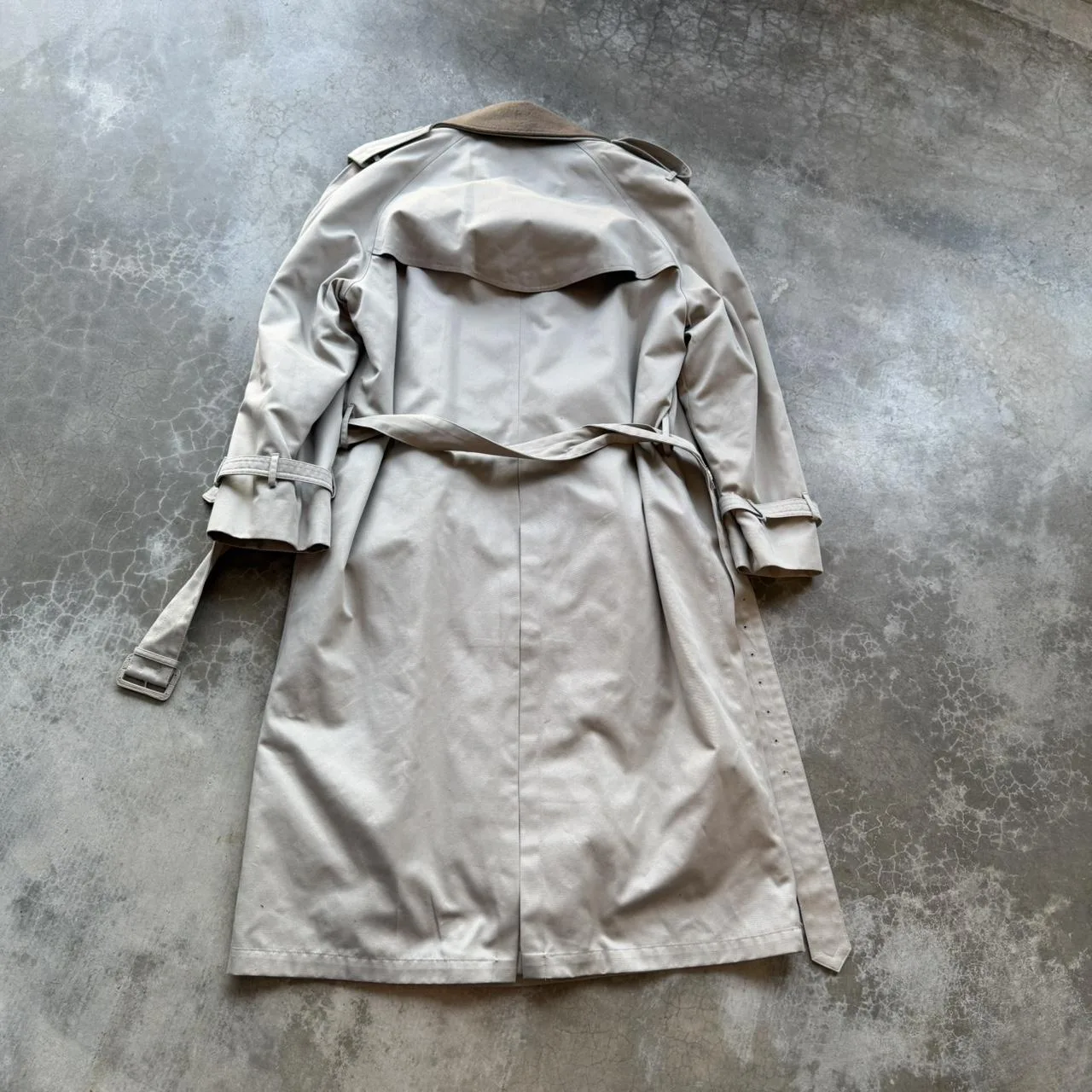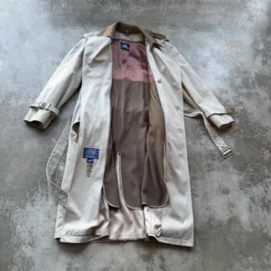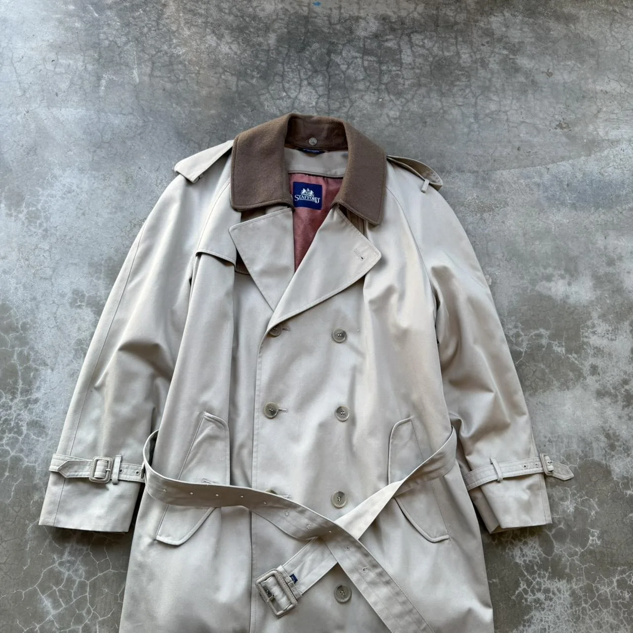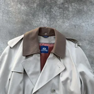 Vintage 90’s Stafford Tan Wool lined double breasted belted long trench over coat jacket