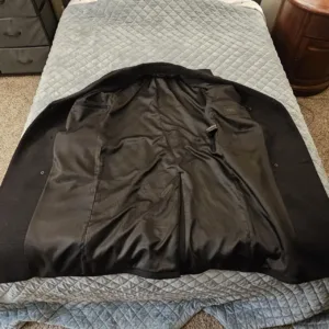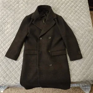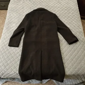 Grey double breasted wool blend trench coat. 43 inches at shoulder. #overcoat #outerwear .