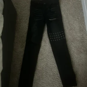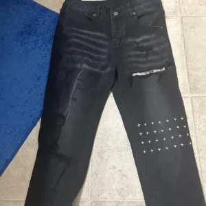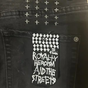 black denim, ripped jeans, low-rise, straight leg, distressed, streetwear, grunge, monochrome, slim fit, casual