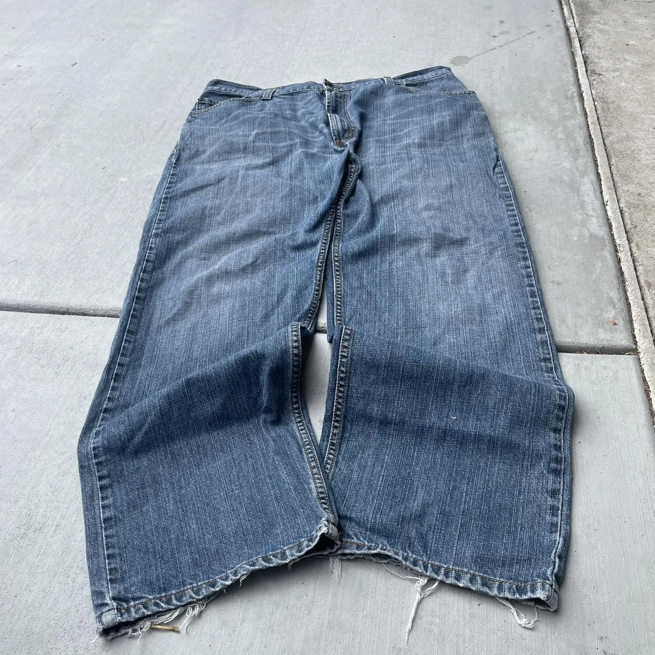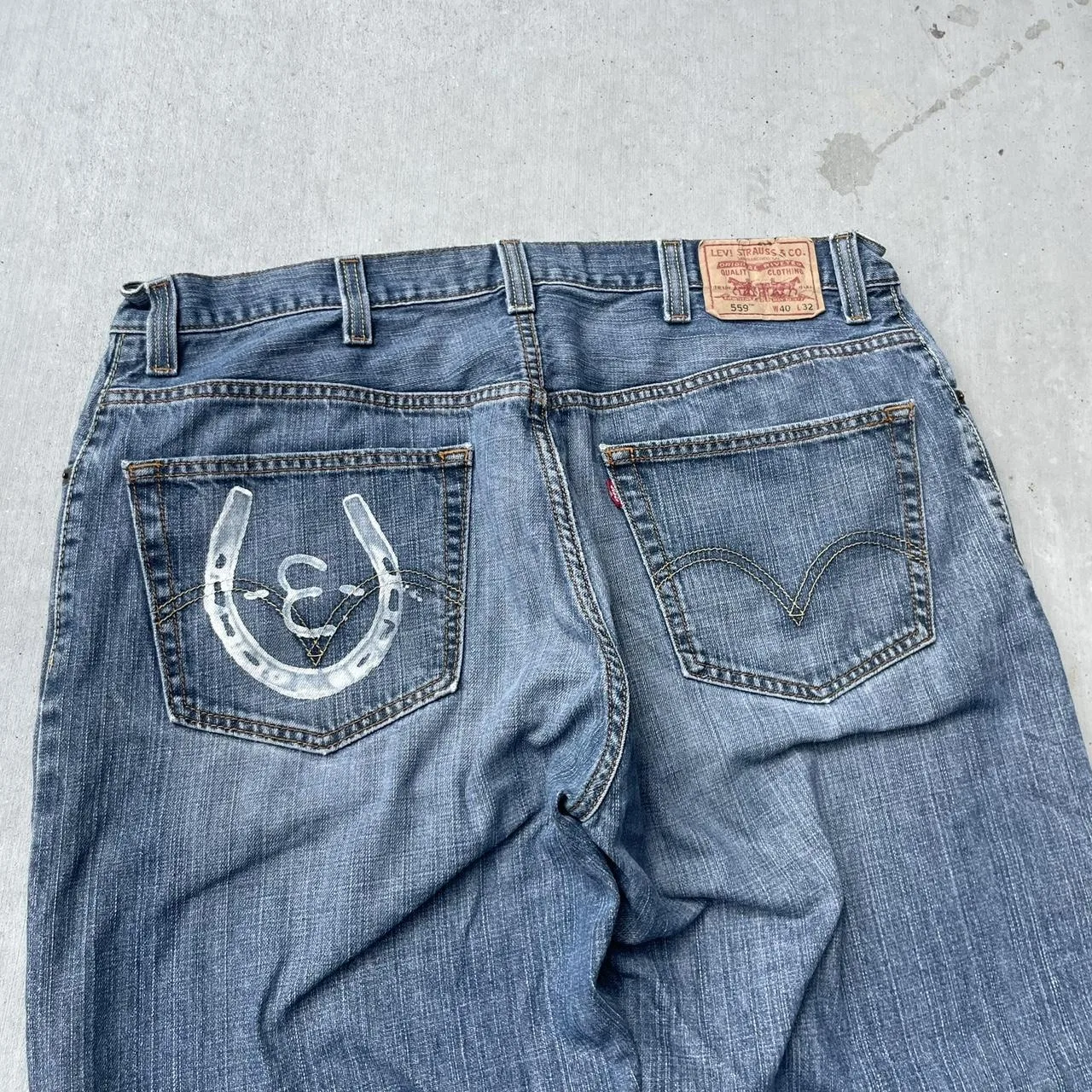 Levi’s 559 custom denim jeans with custom horseshoe design jeans baggy fit/relaxed 10 inch leg opening