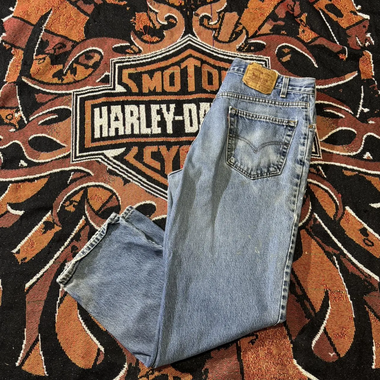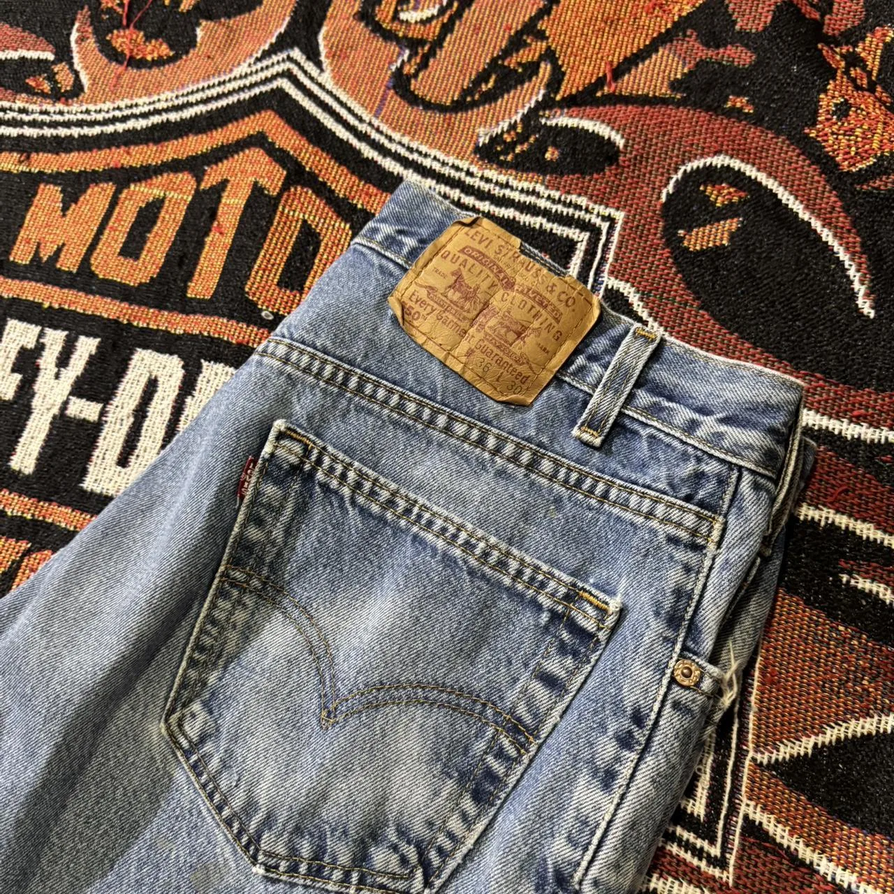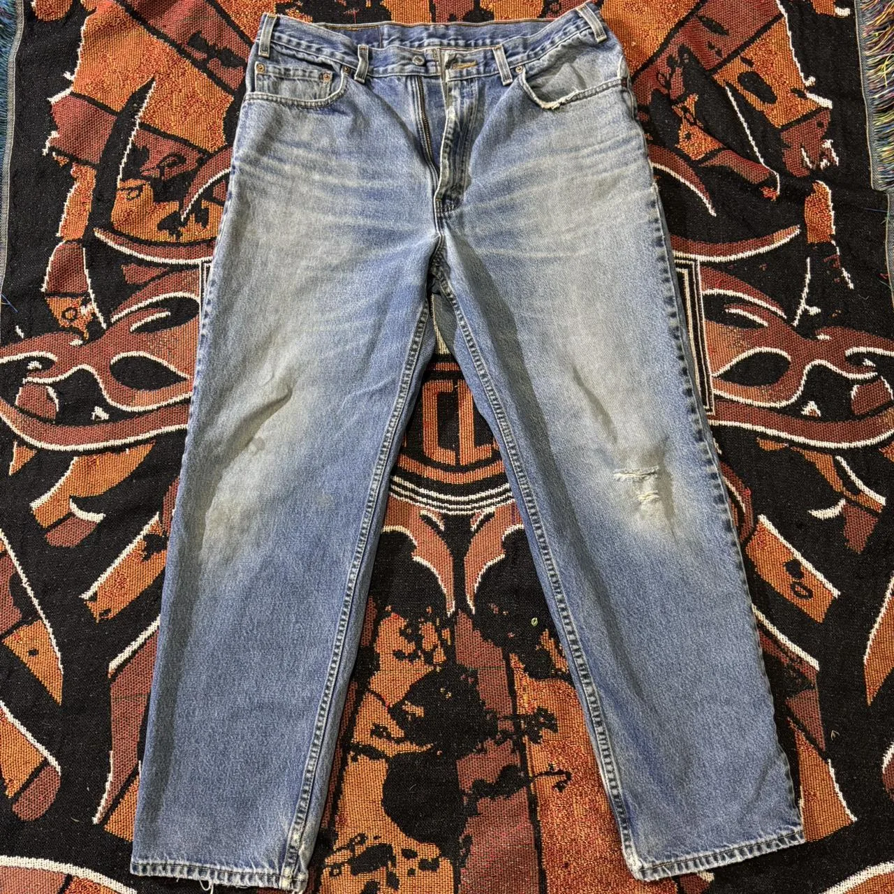 Vintage Levi’s 550 Jeans, size 36×30, nicely worn in and distressed as seen.