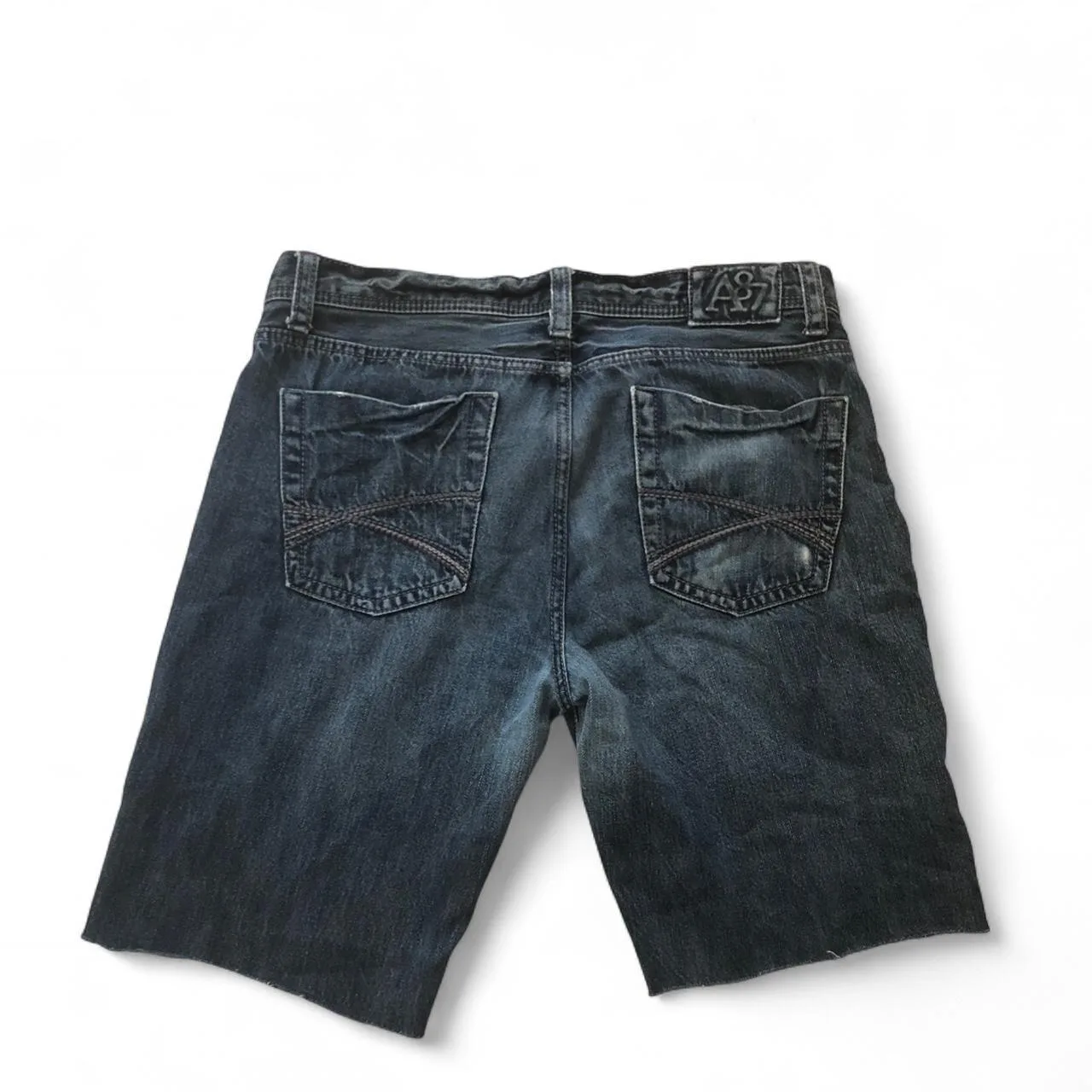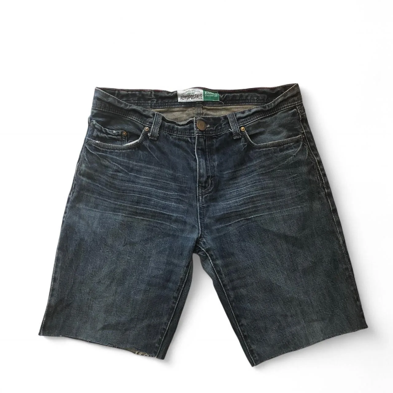 Aeropostale men’s dark wash denim shorts (jorts), relaxed fit size 34. Inseam 10.5”.