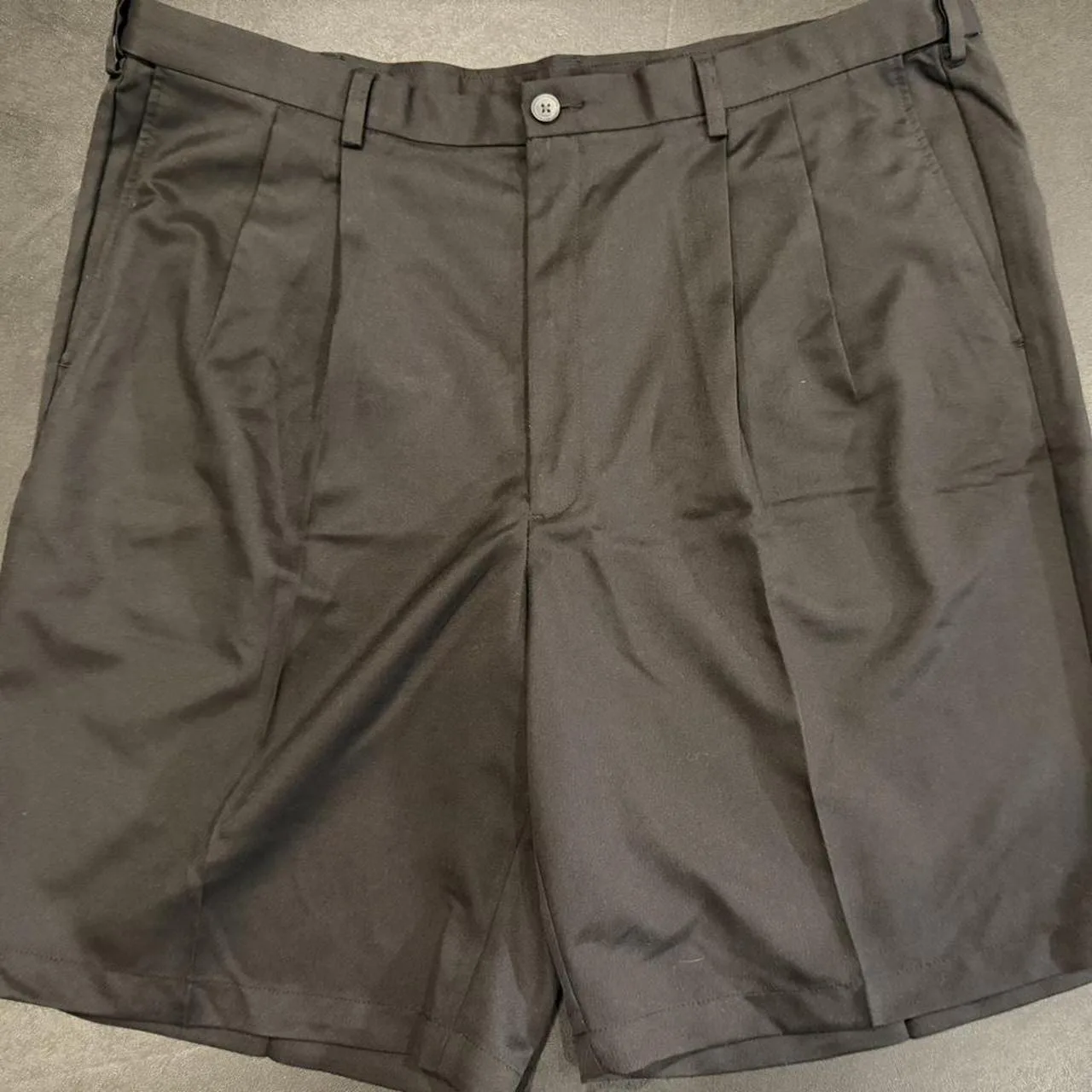 Haggar Men’s Cool 18 Classic Fit Pleat Front Expandable Waistband Short color black size 44 machine washable #casual #summer #resort